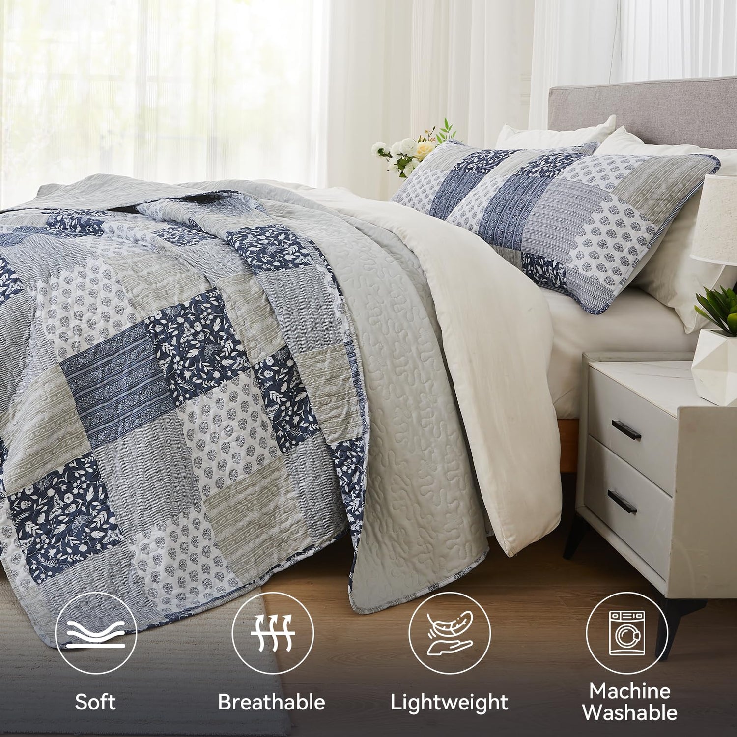 - 🔘PATCHWORK QUILT SET - Specialized reversible stitching process, handmade stitched design, vintage farmhouse patchwork bedspread set. Super soft fabric to create a lightweight bedspread coverlet set for year-round comforts.