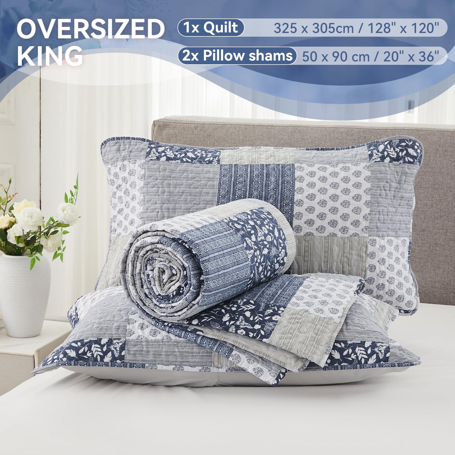 - 🔘BEDDING SET DIMENSIONS - Oversized King size quilt set 3 pieces: 1x Bedspread (325 x 305cm / 128" x 120"), 2x Pillow shams (50 x 90 cm / 20" x 36"). Please notice that there's no pillow insert.