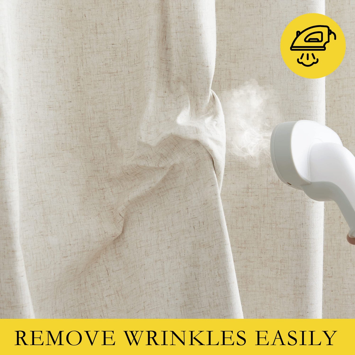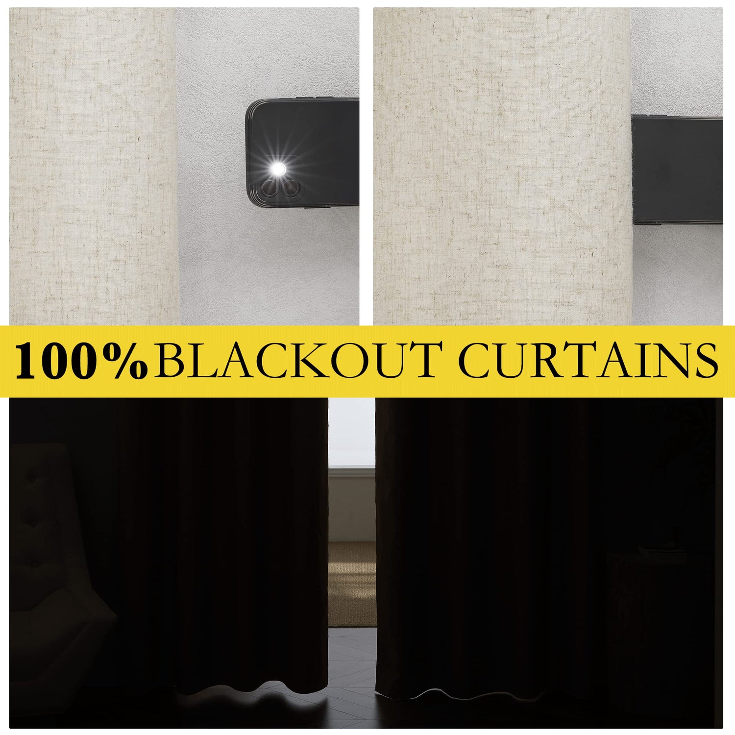 NICETOWN Natural 100% Blackout Linen Curtains 84 inch Long Burg for Living Room, 2 Panels, 52" Wide, Farmhouse Thick Completely Blackout Window Treatment Thermal Insulated Warm Drapes for Winter