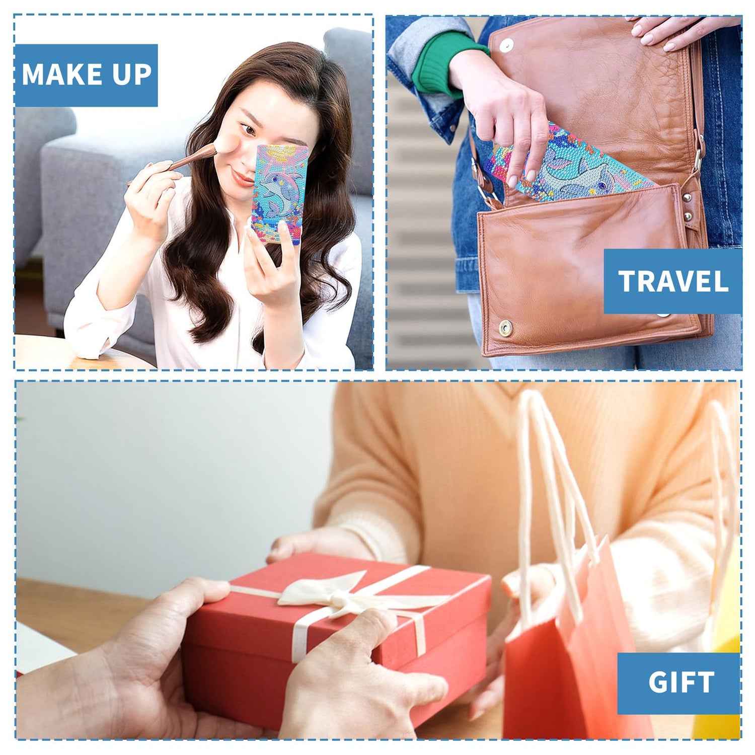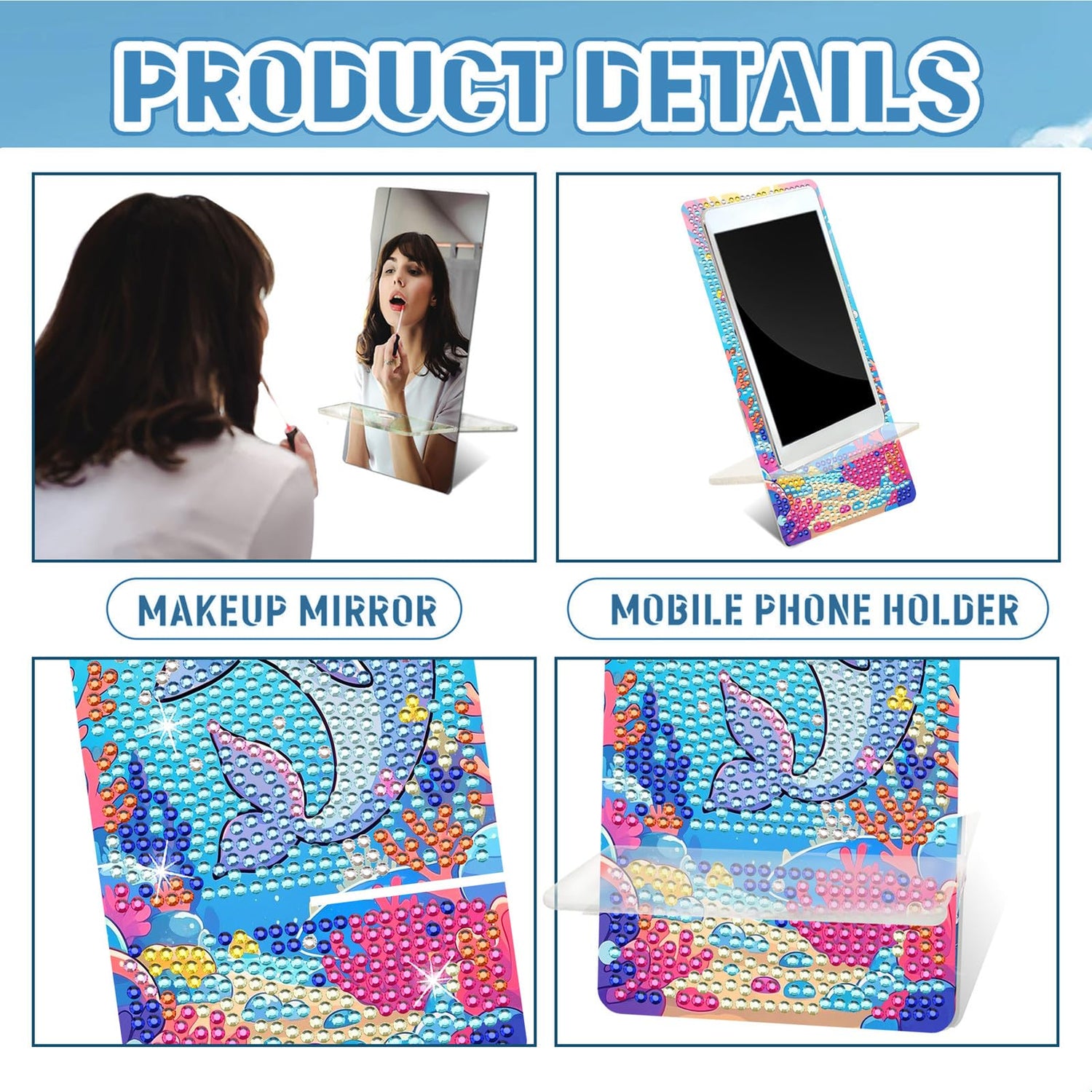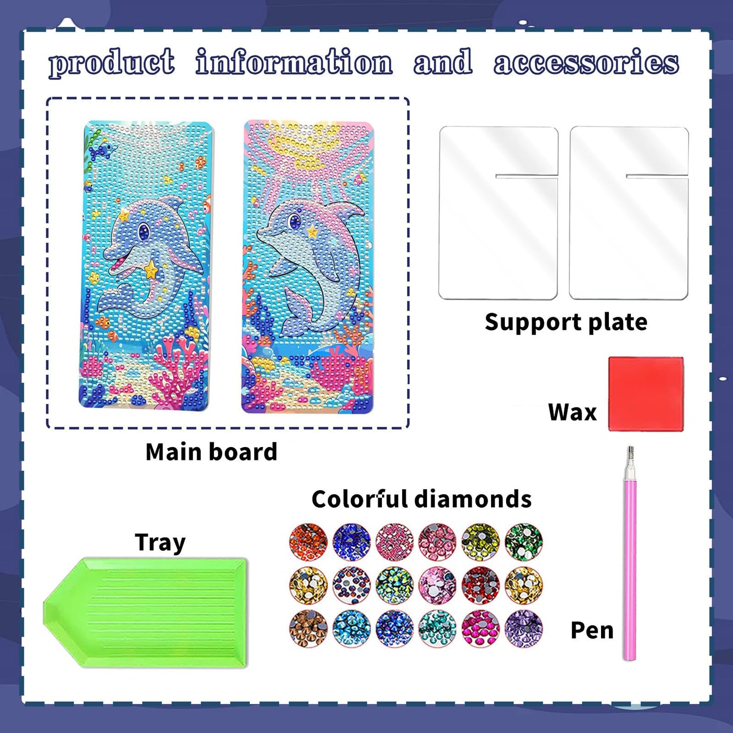 NUFTVI 2 Pack Diamond Painting Cell Phone Holder, DIY Full Crystal Cute Dolphins Diamond Art Phone Holder and Mirror, Diamond Art Kits for Beginner Adult