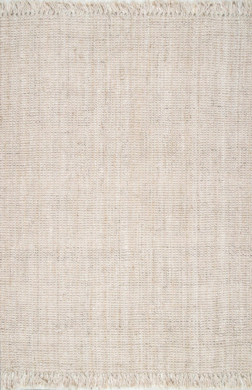 nuLOOM 5x8 Daniela Jute Tassel Hand Woven Area Rug, Off White, Solid Chunky Farmhouse Design, Natural Fiber, For Bedroom, Dining Room, Living Room, Hallway, Office, Entryway