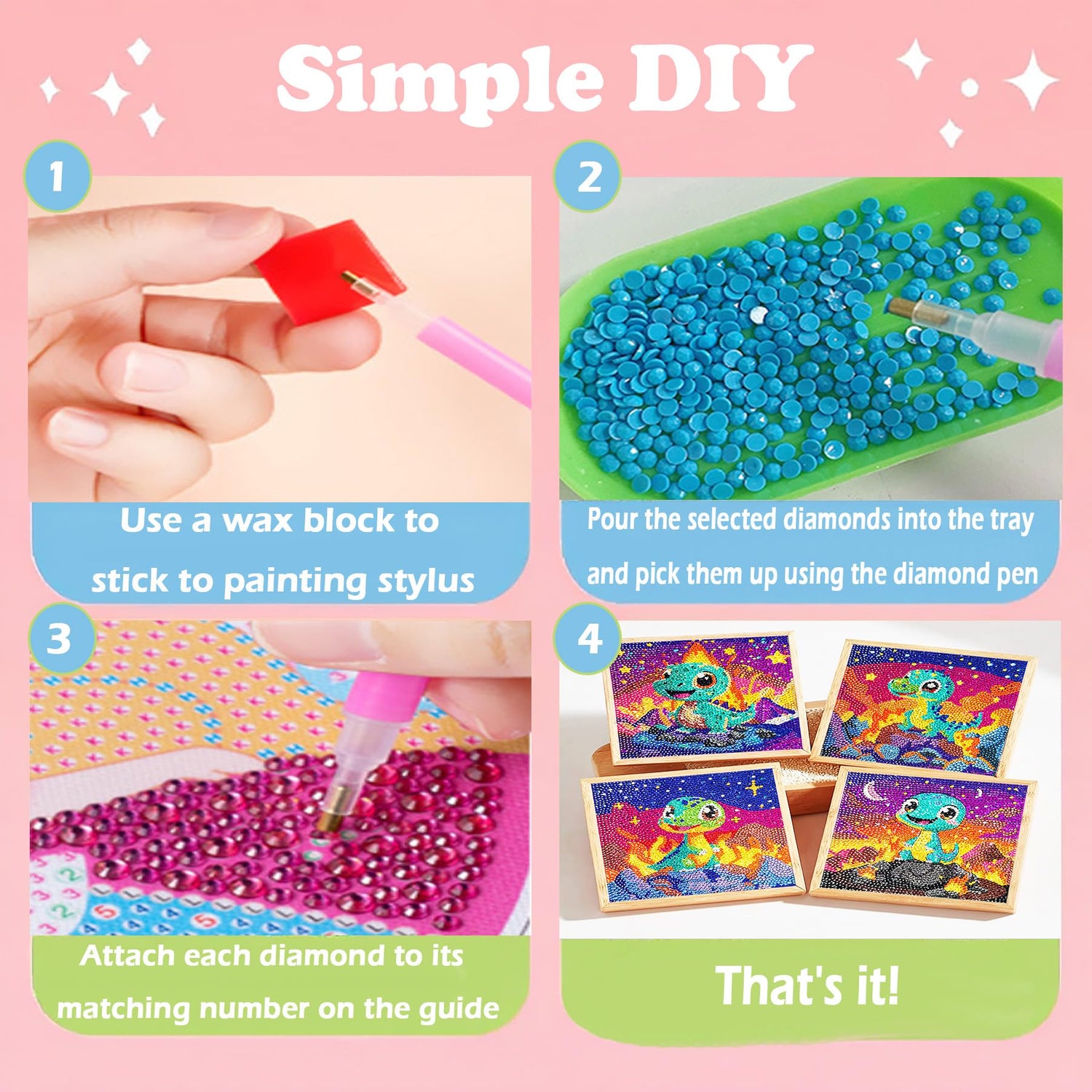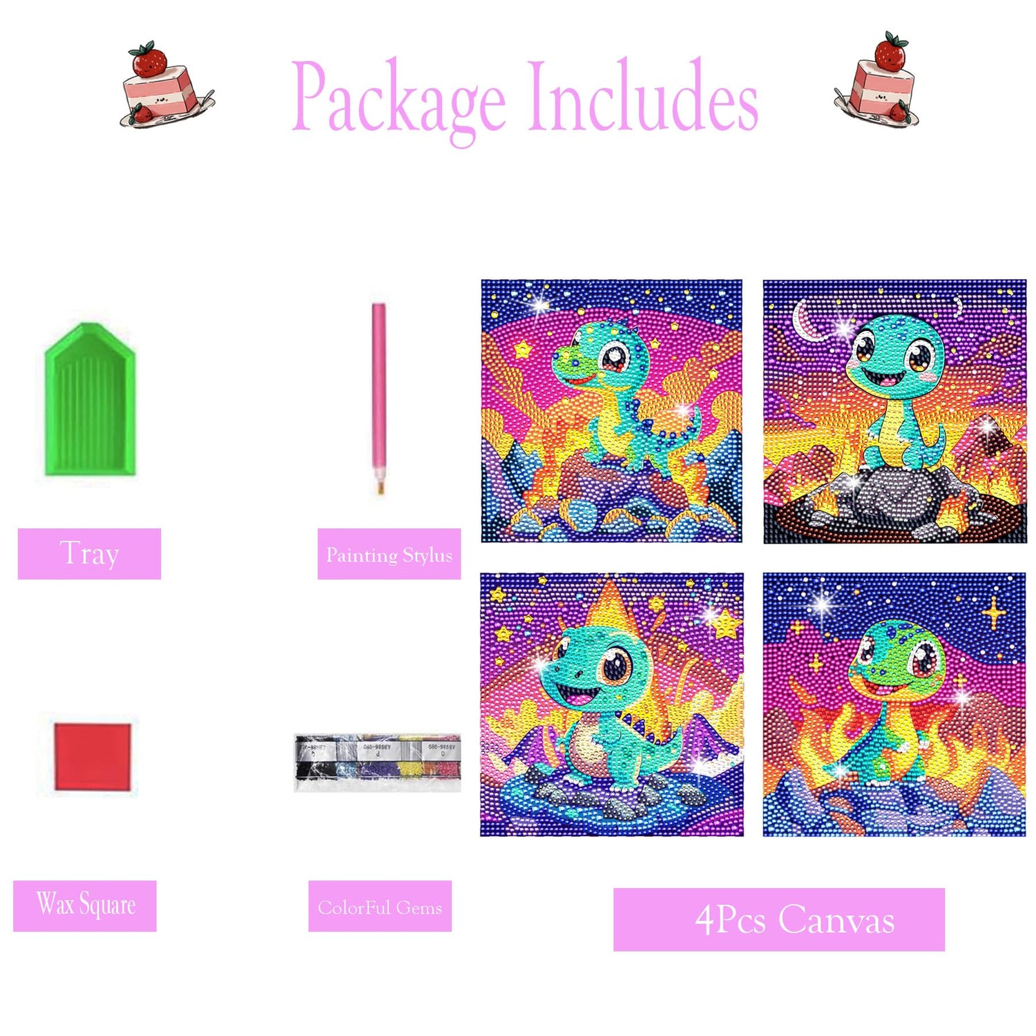 Details: This diamond art kits for boys girls features 4 beloved dinosaurs designs to inspire young artists.: