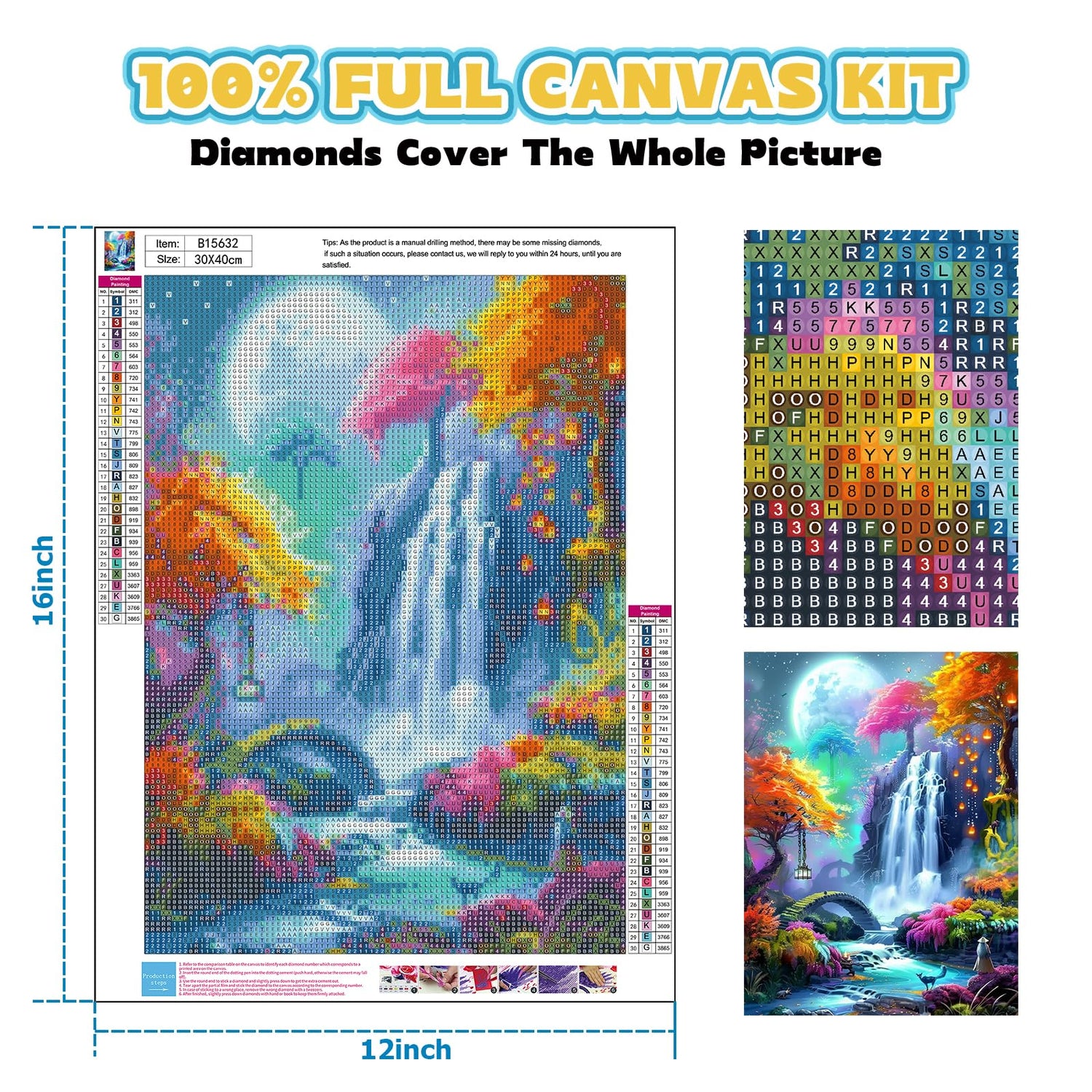 Perycomly Waterfall Landscape Diamond Art Kits for Adults, DIY Fantasy Moon Scenery Diamond Painting Kit for Beginners, 5D Embroidery Craft Kits for Home Decor Gift - 12x16 Inch