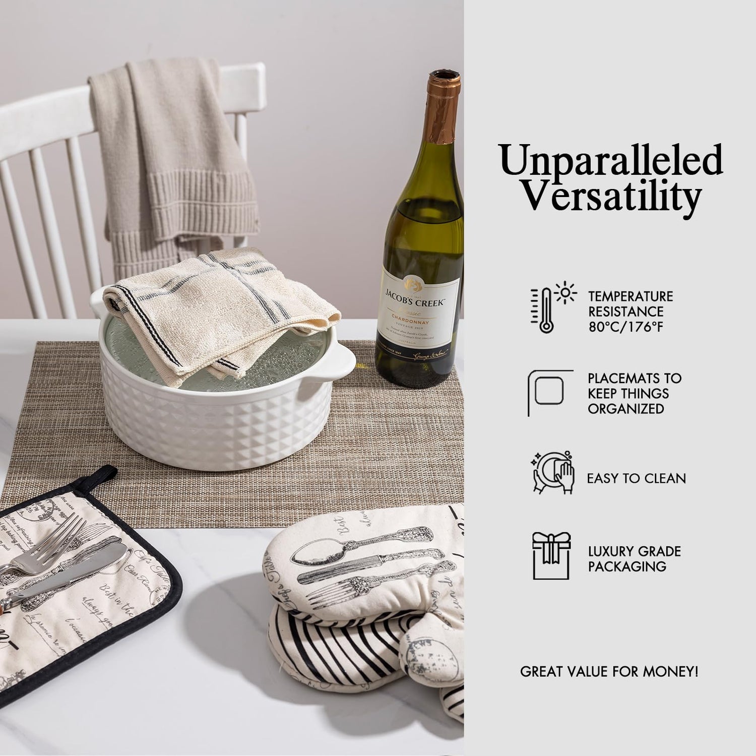 - Premium Quality and Durability: Onebento placemats are made from a high-quality blend of 70% PVC and 30% polyester, offering exceptional durability and aesthetic. This combination ensures long-lasting use and superior protection for your dining table, making it a perfect choice for quality-required consumers.