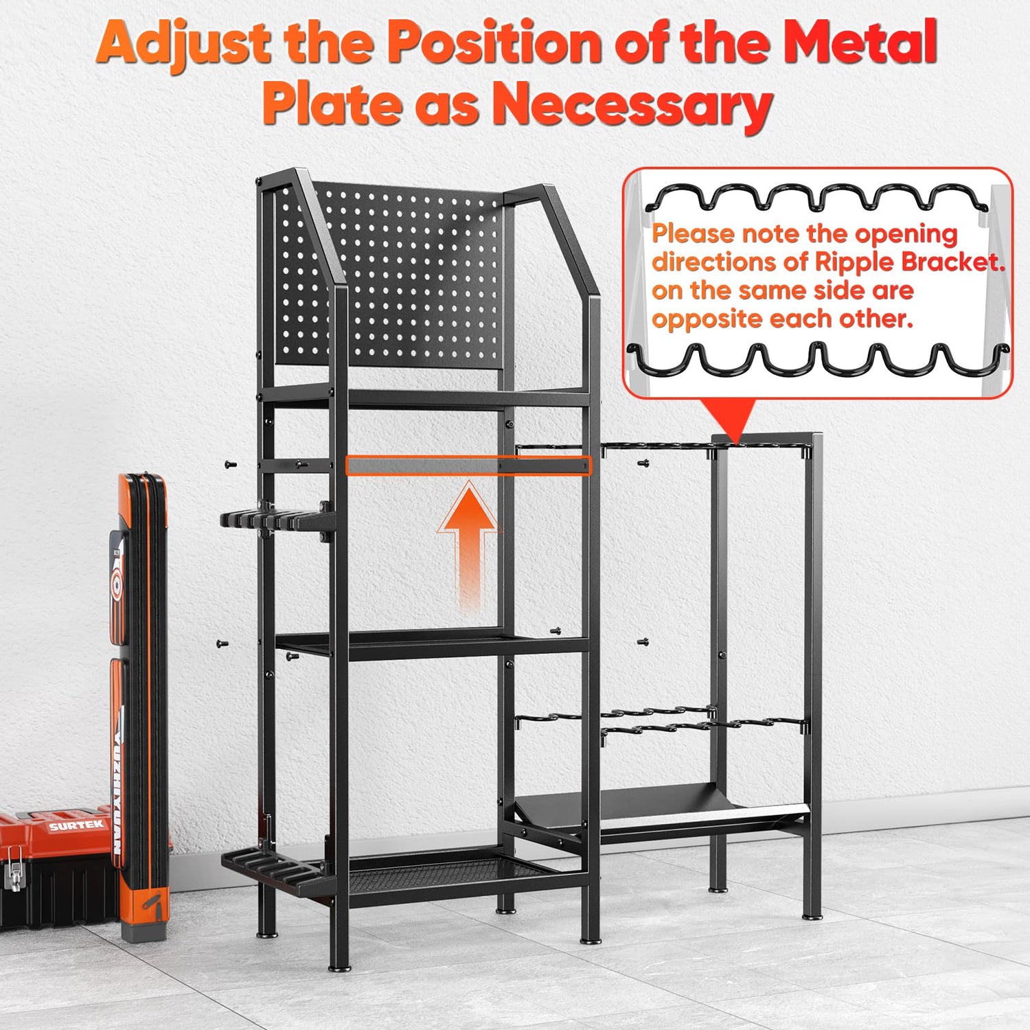 - Three-Layer Large-Capacity Storage:Our fishing rod holders for garage is designed with three layers of adjustable metal plates, allowing you to modify their positions as needed. It is ideal for storing tackle boxes, fishing backpacks, buckets, coolers, and foldable chairs. Additionally, the pegboard can be utilized for storing fishing reels, lines, lures, pliers, baits, gloves, sunscreen, tools, reel combos, and scissors.