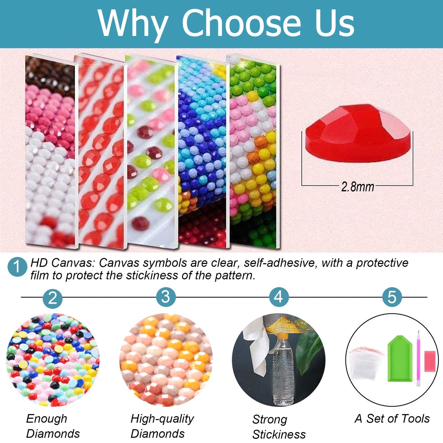 - 🖼️High-Definition Canvas for Effortless Diamond Art-- Our canvas is crafted from excellent materials. The canvas comes pre-applied with a sticky background and protective film, ensuring your picture remains secure as you work on it. The clear symbols and easy-to-read patterns simplify the process, allowing you to create with ease and confidence. Uniform texture, and vivid color printing that brings your masterpiece to life, perfect for both beginners and seasoned crafters.