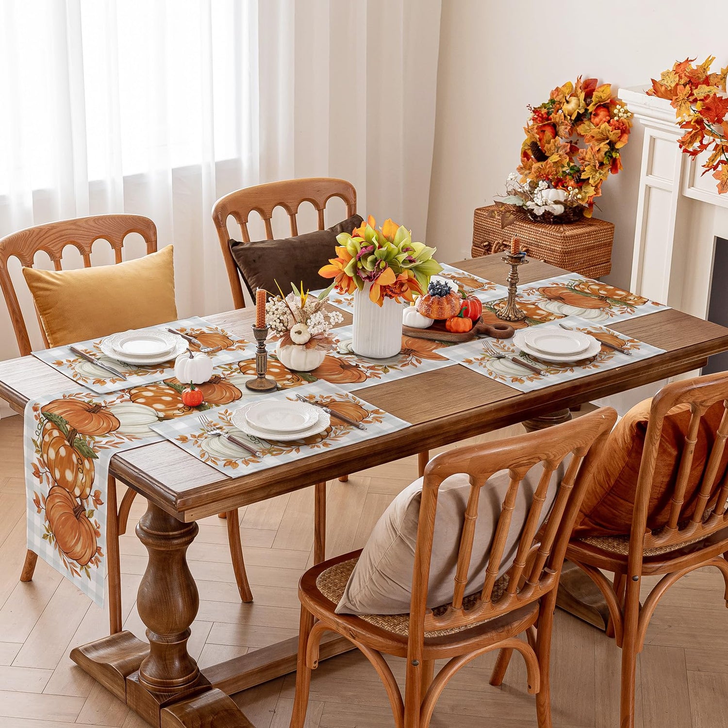 - FALL OCCASIONS DECOR: This multi-functional pumpkins plaid table runner brings a warm atmosphere to your dining events. It is perfect for family gatherings, Thanksgiving parties, and holiday decor.
