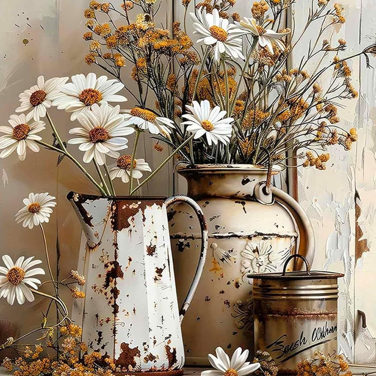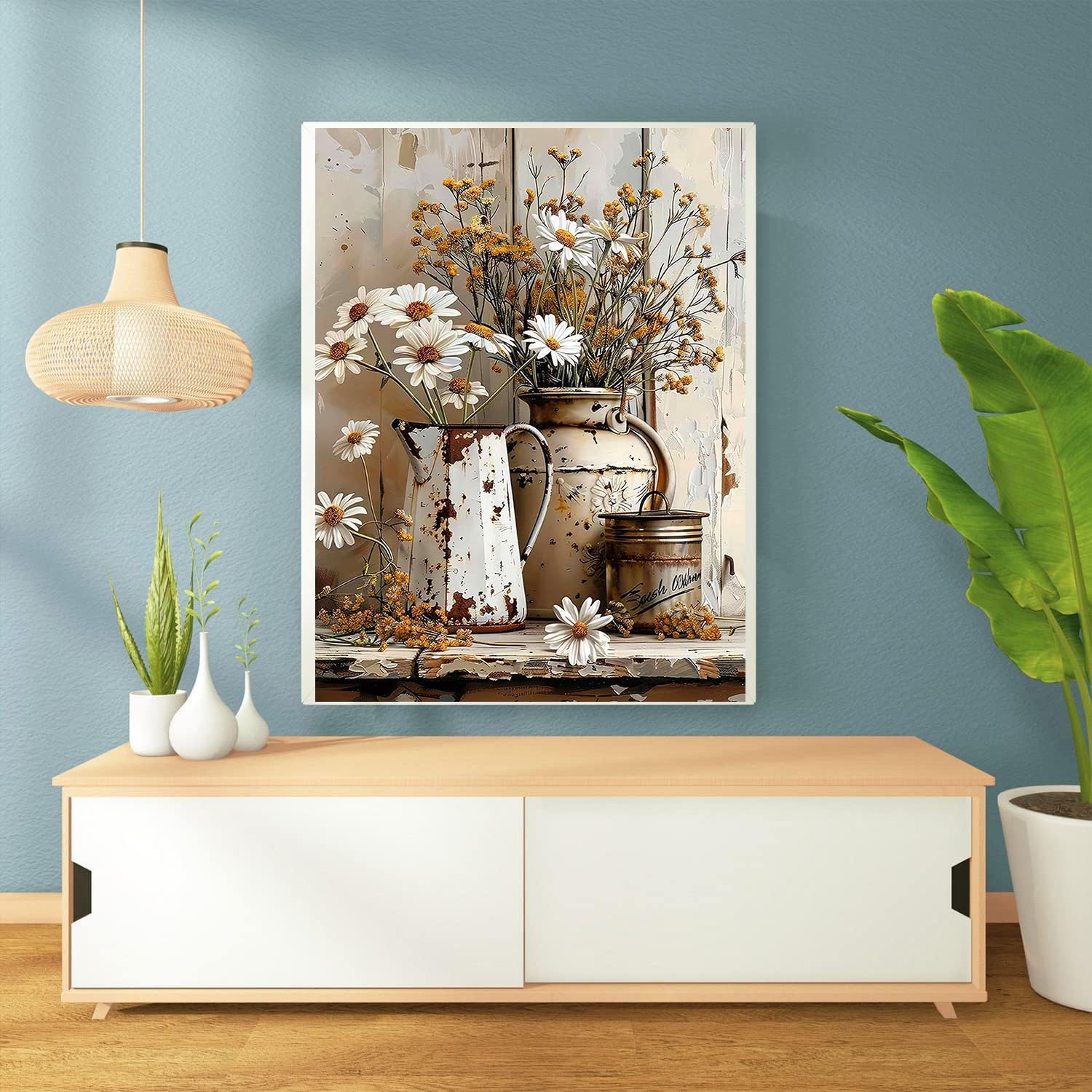 Rustic Flowers Diamond Art Kits for Adults - Daisy Diamond Painting Kits for Adults Beginner, DIY 5D Full Drill Gem Art for Home Wall Decor 12x16 inch