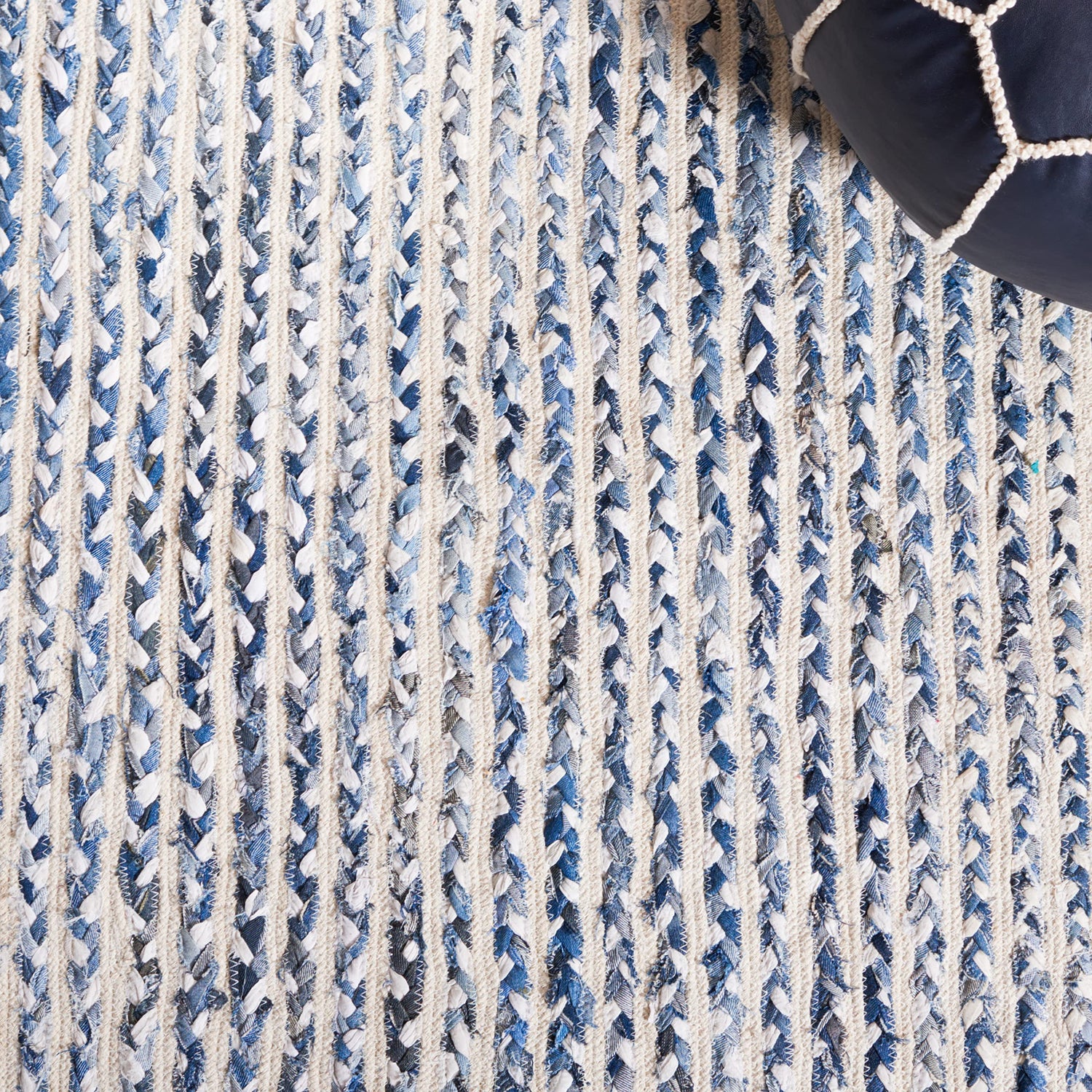 SAFAVIEH Braided Collection Area Rug - 5' x 8', Blue & Ivory, Handmade Farmhouse Cotton, Ideal for High Traffic Areas in Living Room, Bedroom (BRD260M)