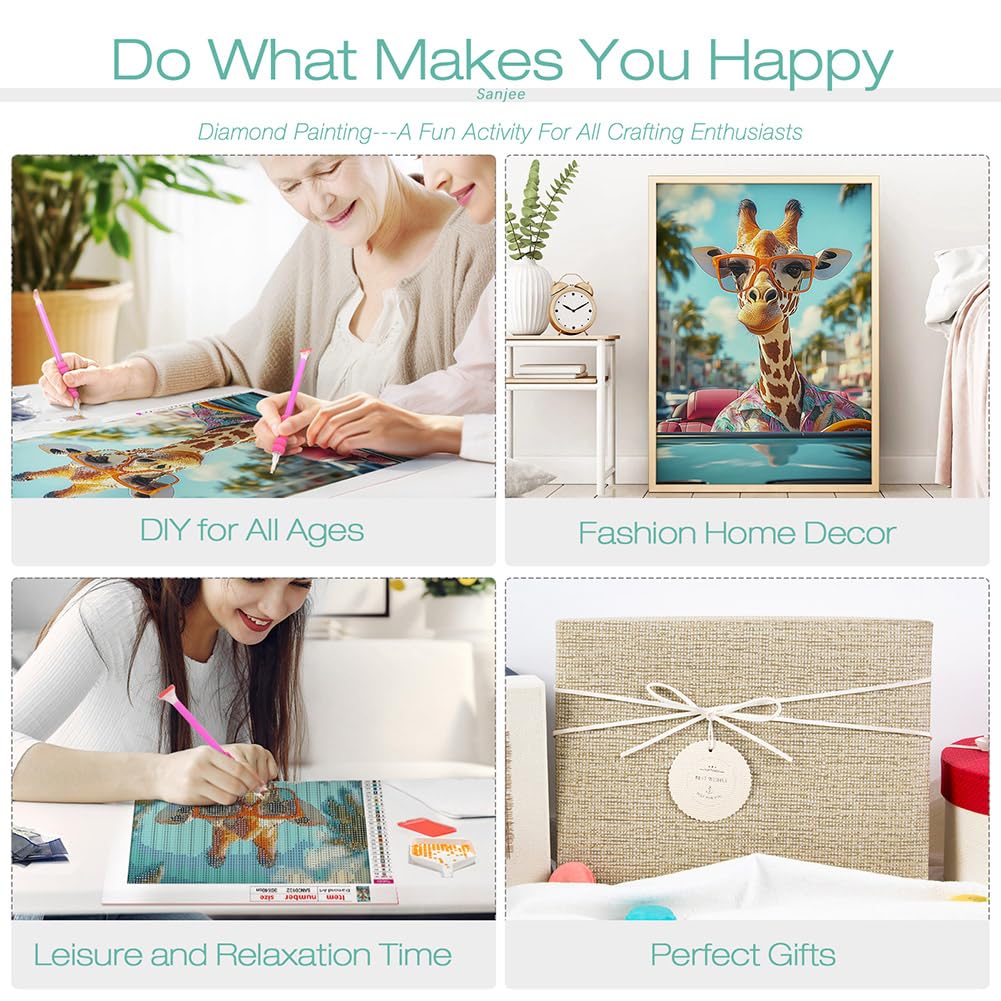 - Giraffe Diamond Art Painting Kit: Enjoy relaxing diamond art! Complete DIY craft set includes: 12×16-inch HD canvas, diamond pen (3&6-bead tips), wax pad, tray, and 30% extra 5D diamonds. No extra tools required
