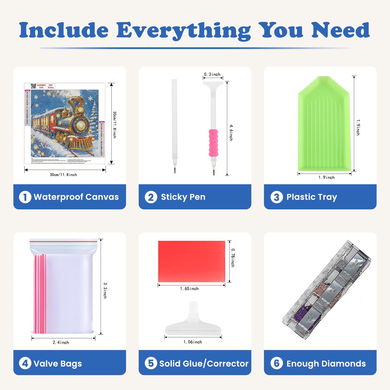 SENQAO Train Diamond Art Kits for Adult, Christmas Diamond Painting Kits for Beginners, DIY Full Drill Winter Holdiay Rhinestone Diamond Dots Gem Painting Art Craft Home Decor 12 x12 Inch