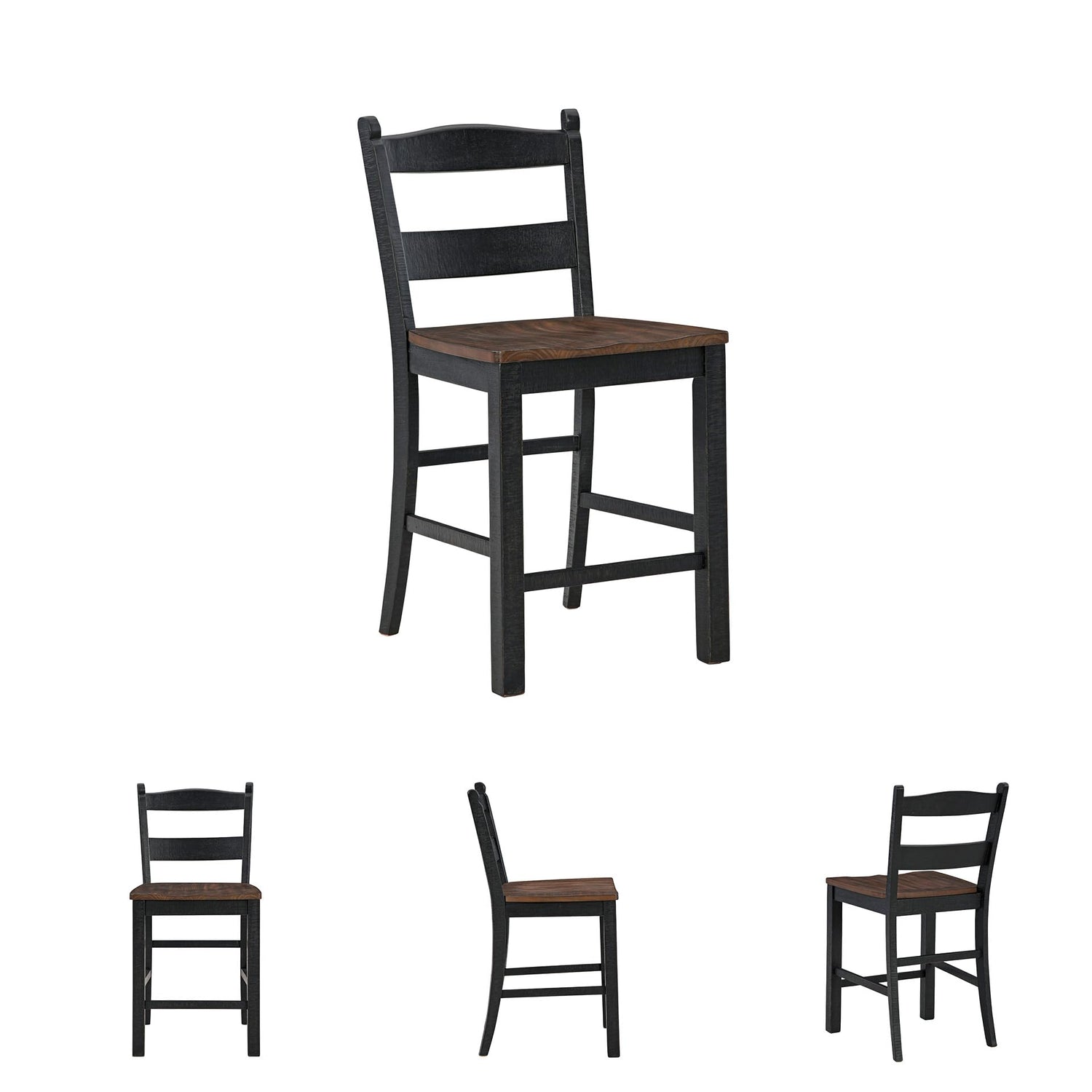 - QUALITY MADE: Chair is made with hardwood solids. Distressed black frame. Solid pine wood seat with rustic brown finish. Front legs with adjustable levelers
