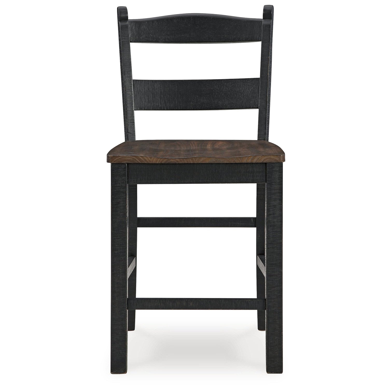Signature Design by Ashley Valebeck Casual Rustic Counter Height Bar Stool with Contoured Seat and Footrest, Set of 2, Wood, 24" High, Black & Dark Brown