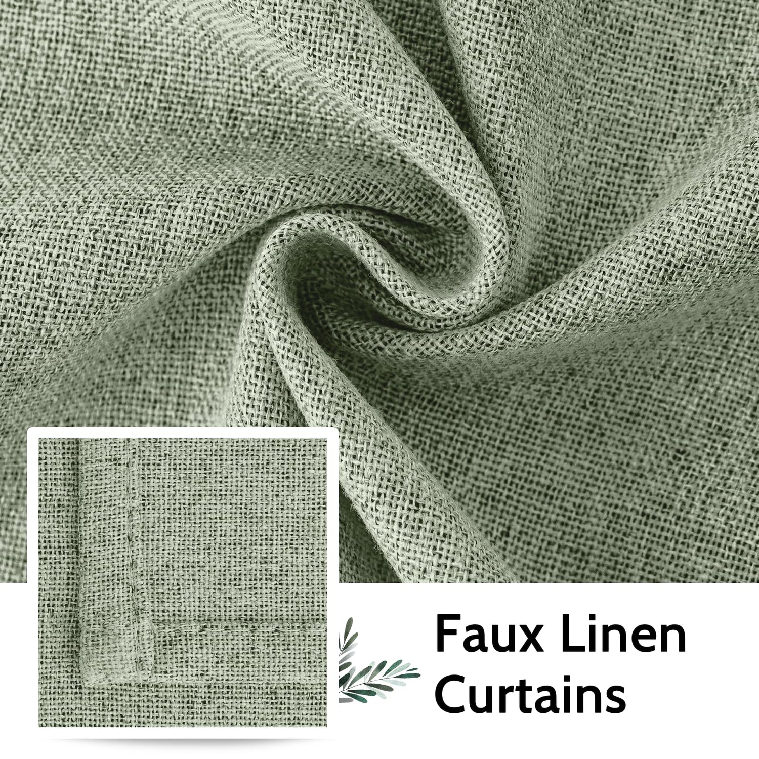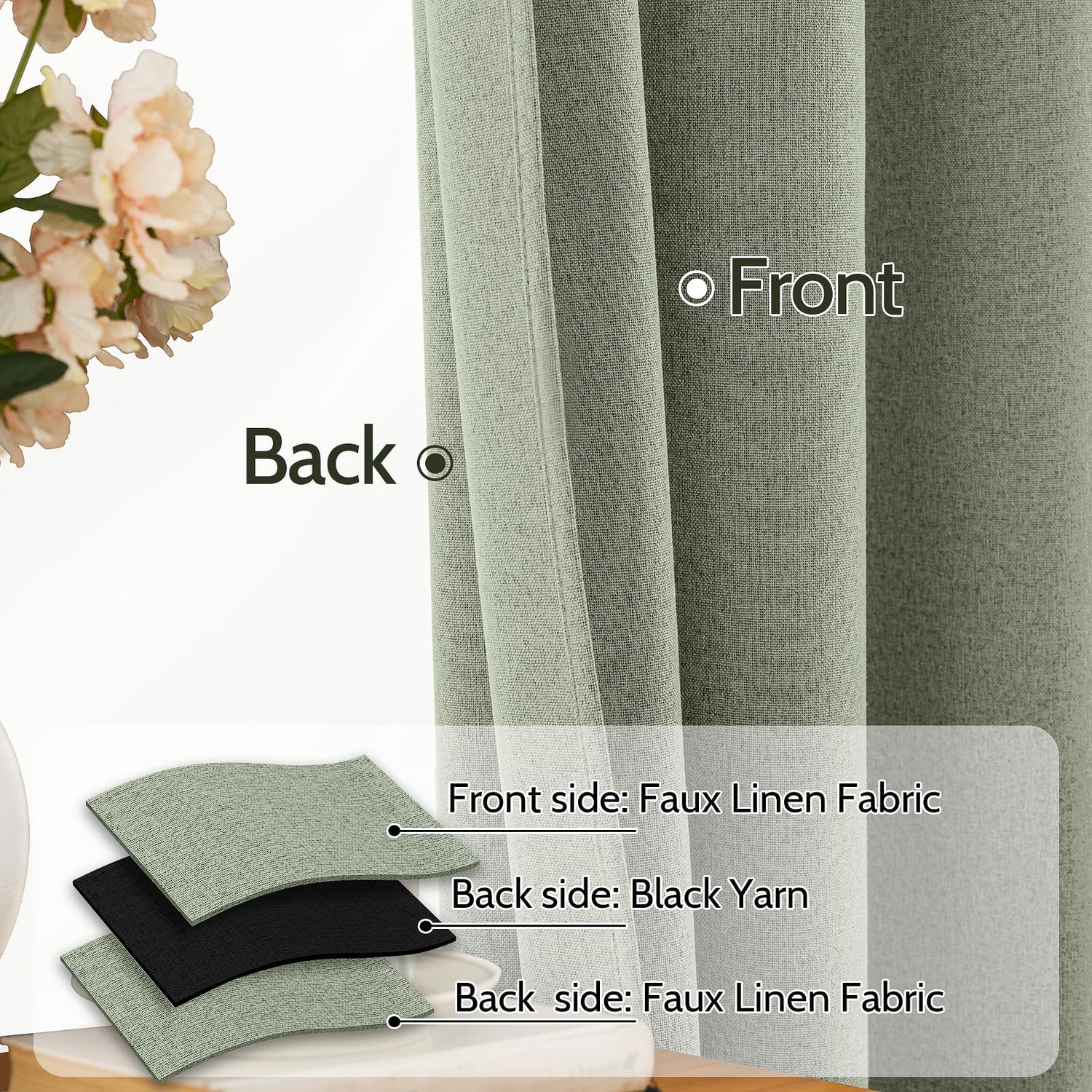 SimpleHome Sage Green Linen 100% Blackout Curtains for Living Room,84 Inch Length Farmhouse Back Tab Textured Curtains for Bedroom,2 Panels,52" W x 84" L