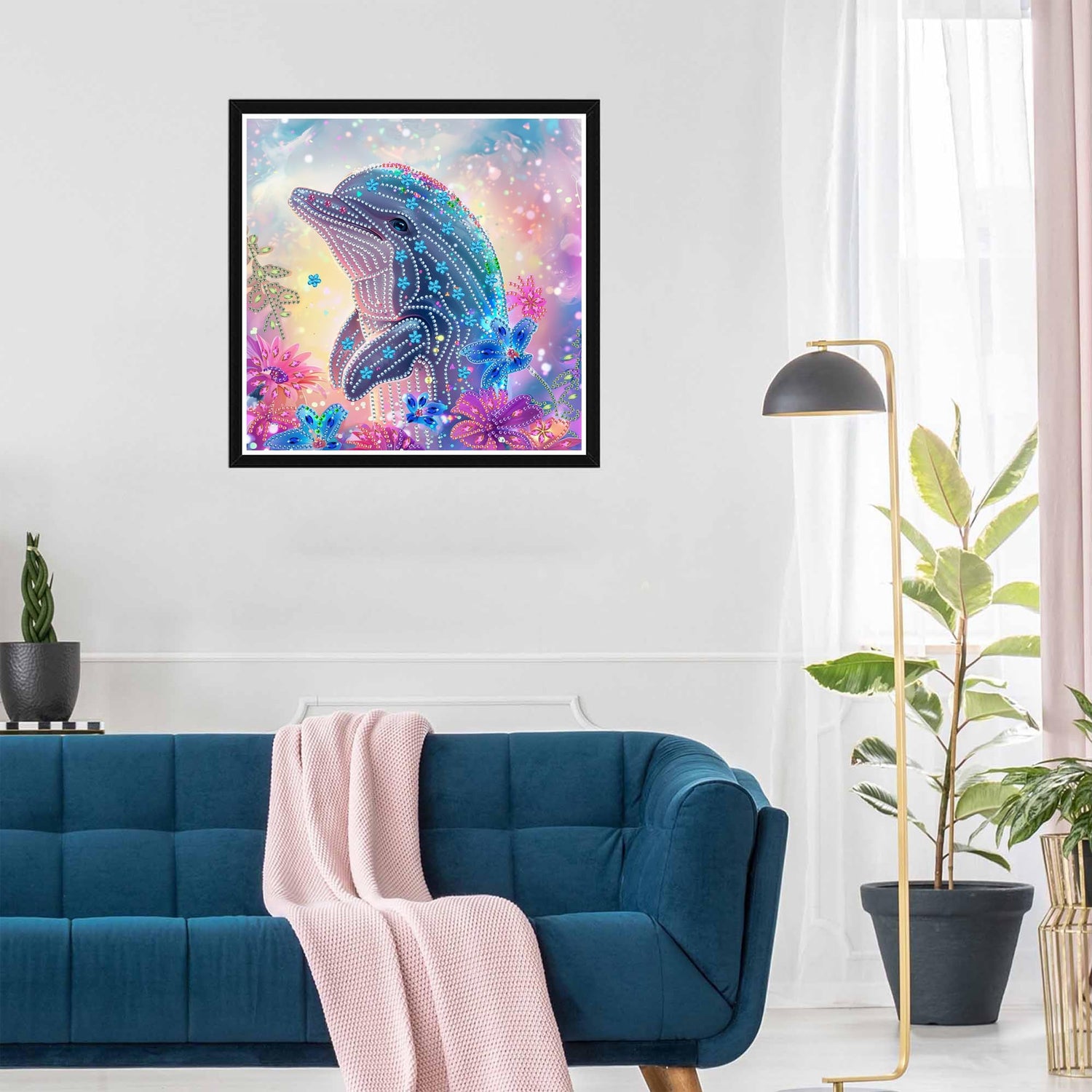 SKRYUIE DIY Diamond Art Kits for Adults Dolphin Special Shape - 5D Diamond Painting Kits for Adults Animal - Crystal Embroidery Cross Stitch - Craft for Wall & Office Decor 12 x 12 Inch c5