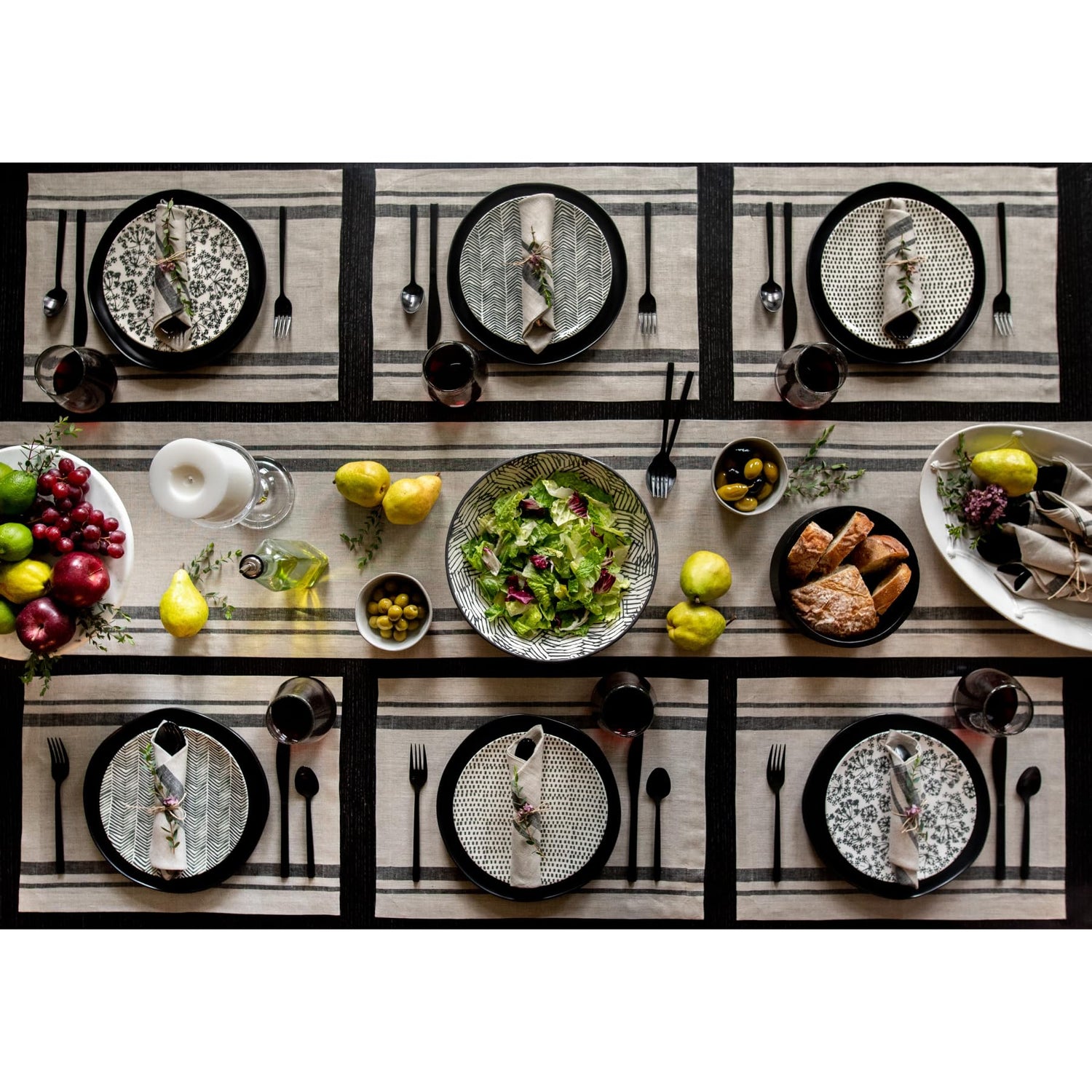 - ๐๐ผ๐บ๐ฝ๐ผ๐๐ถ๐๐ถ๐ผ๐ป ๐ฎ๐ป๐ฑ ๐๐ฟ๐ฎ๐ณ๐๐๐บ๐ฎ๐ป๐๐ต๐ถ๐ฝ : 100% Pure European Flax Linen Black and Natural Thanksgiving Table Runner - ๐๐ฟ๐ฒ๐ป๐ฐ๐ต ๐ฆ๐๐ฟ๐ถ๐ฝ๐ฒ | Handcrafted By Skilled Artisans.
