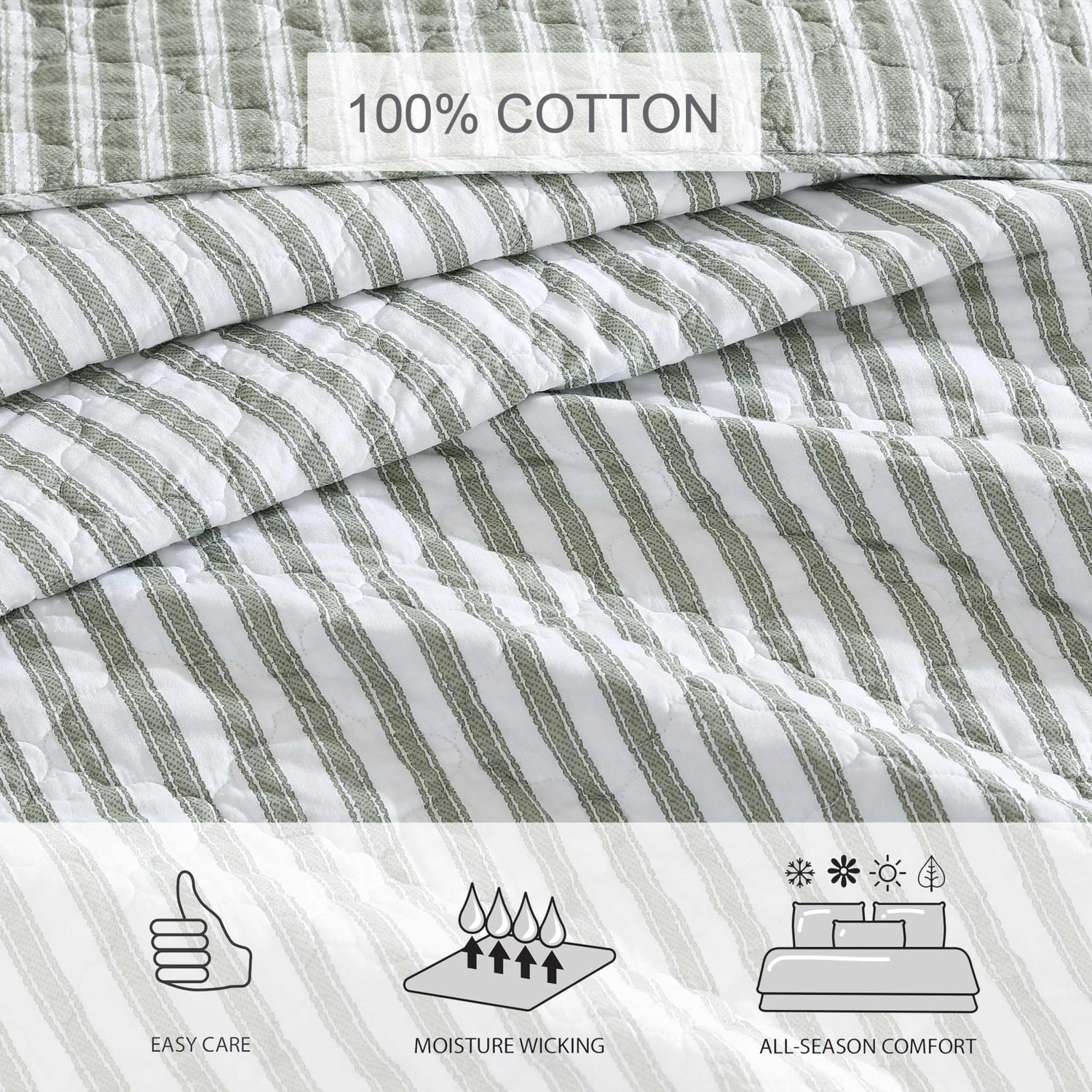 Stone Cottage - Full/Queen Quilt Set, Reversible Cotton Bedding with Matching Shams, Striped Ideal Bedding Set (Willow Way Green, Full/Queen)