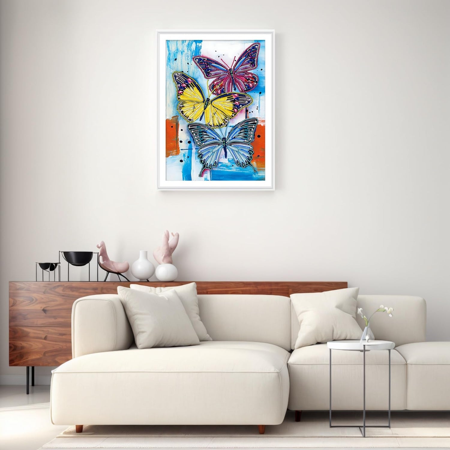 - Vibrant and Eye - Catching Design: This diamond painting kit features three stunning butterflies in vivid colors against a dynamic background. It's a perfect way to add a pop of color and charm to your living space.