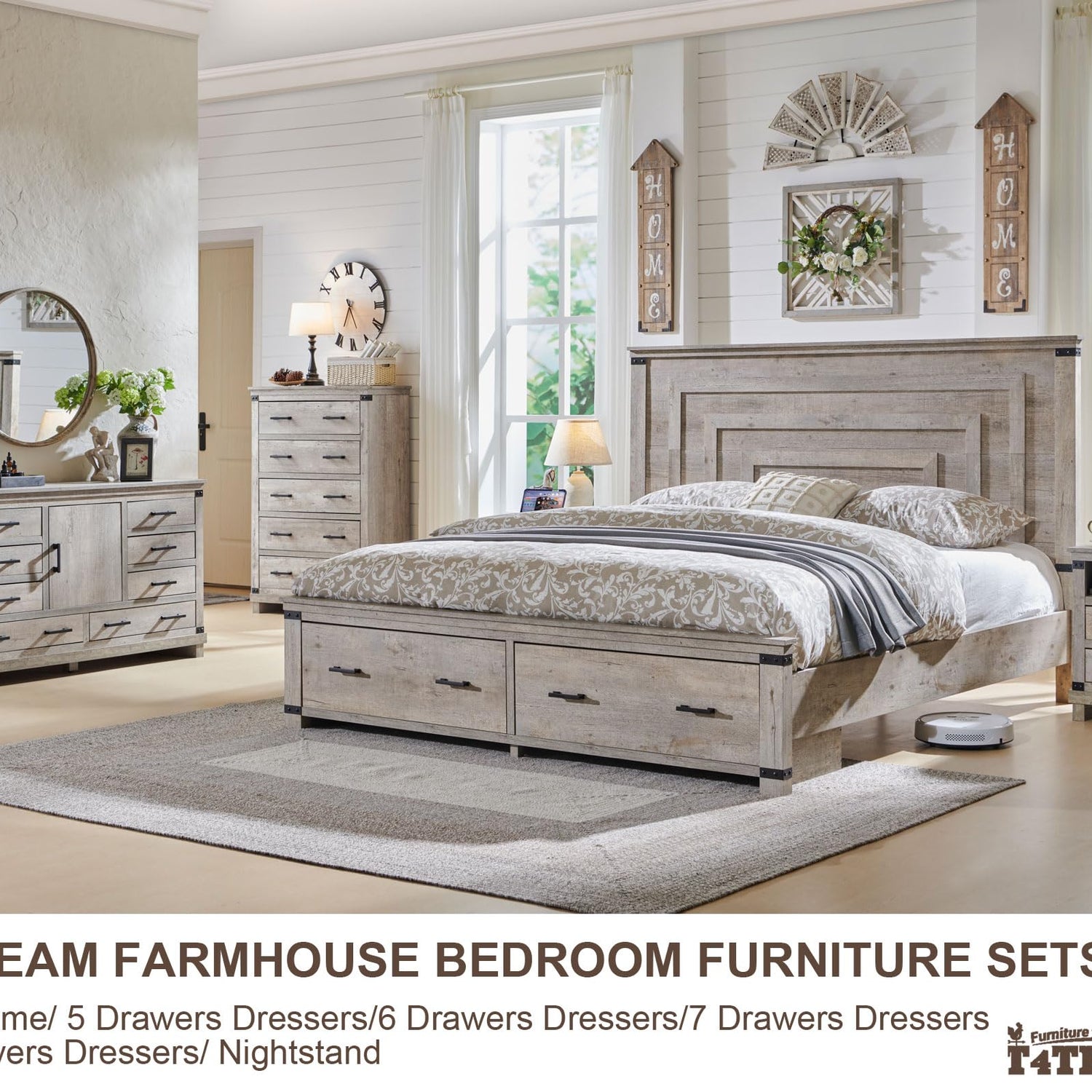 - Craft Your Dream Bedroom: Incorporate the farmhouse charm of natural distressed wood grain stickers that exude warmth and character. The striking 54" headboard feature elegant geometric high-low veneer pattern, adding grandeur to your decor. With 2 spacious sliding wood drawers underneath, enjoy ample hidden storage for a clutter-free space. This queen bed frame enhances both style and functionality while providing exceptional support, making it the perfect centerpiece for your ideal bedroom