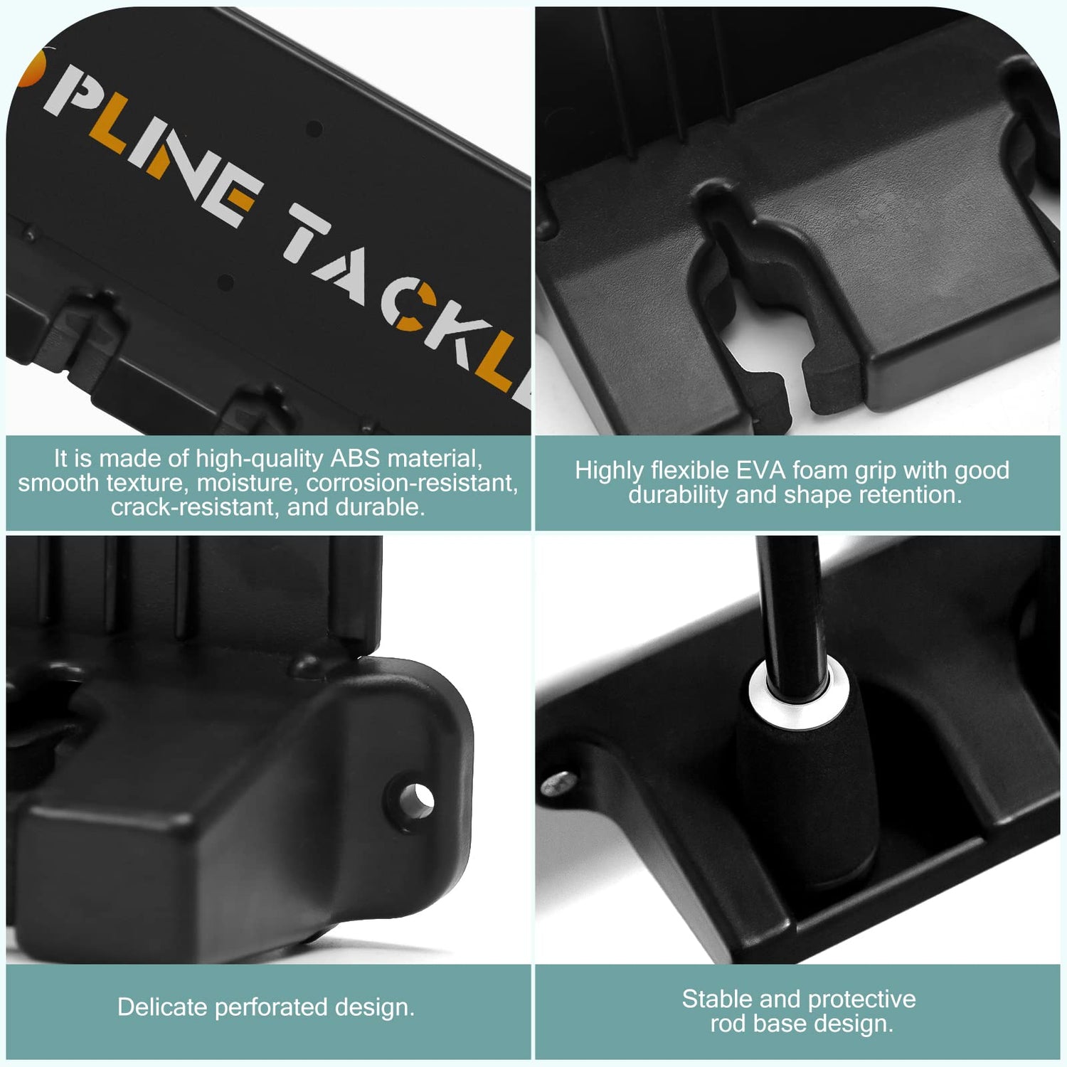- Sturdy Material of Fishing Pole Holders for Garage:The Fishing Rack is made of high-quality ABS material, which is moisture resistant, corrosion resistant, crack resistant, and durable. The highly flexible EVA foam grip has good durability and shape retention. Protect your rod from scratches and prevent the rod blank from deformation. Deep grooves allow the rod to be held securely in place and keep the rod balanced.
