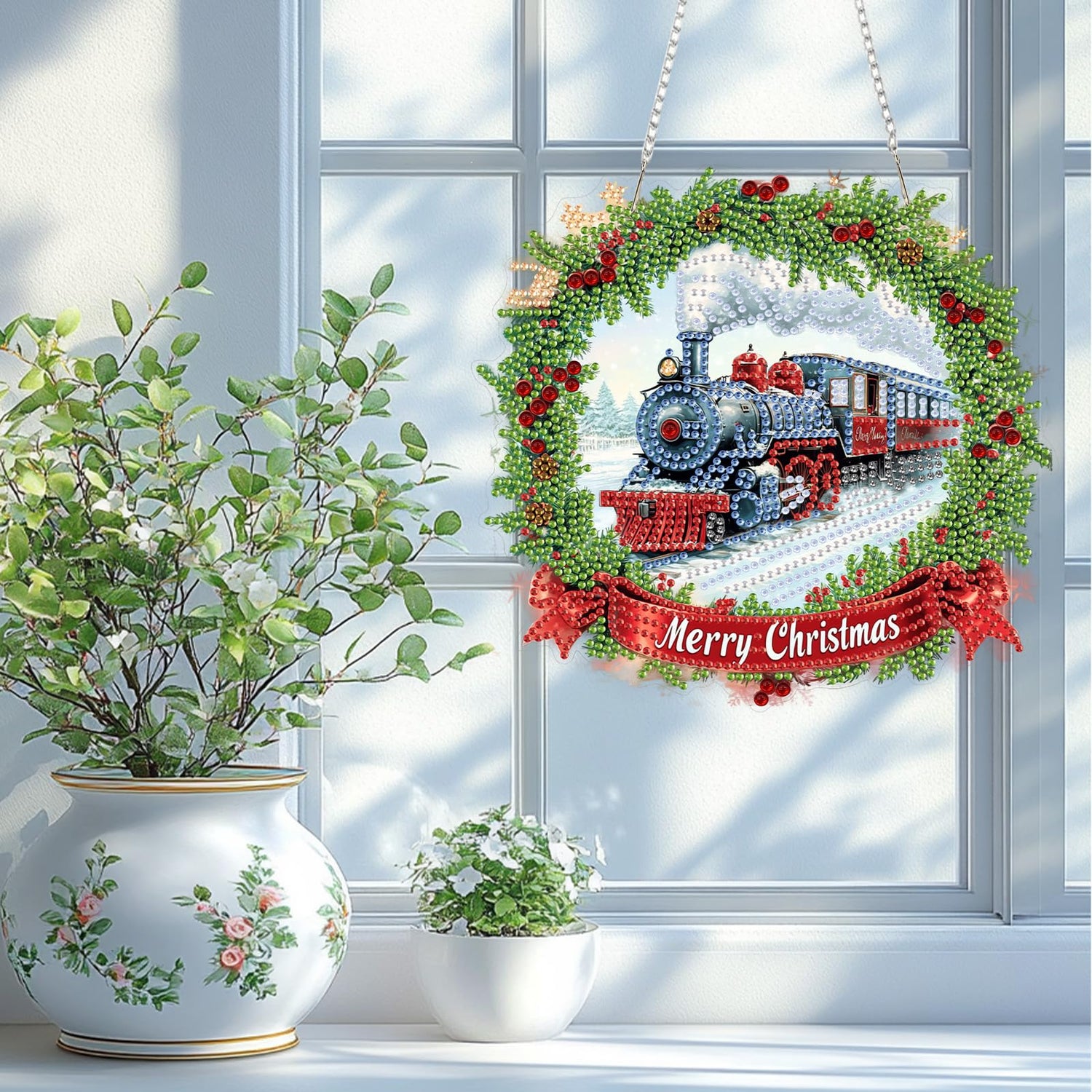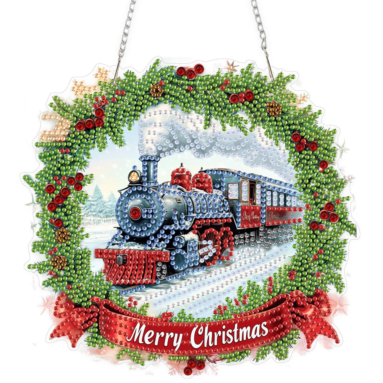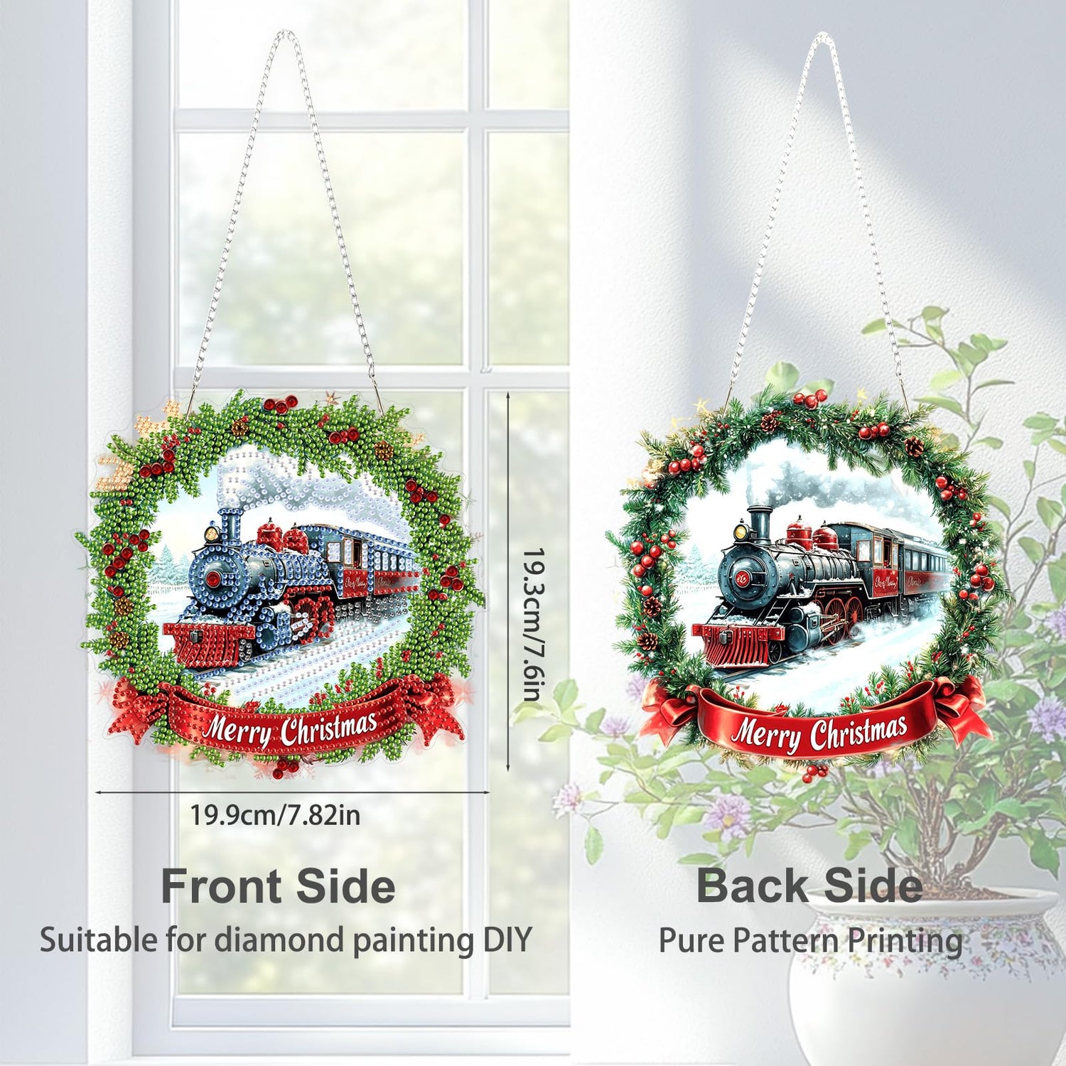 TOSTOG Hanging Diamond Art Kits for Adults, Christmas Train Diamond Paintings for Adults, Diamond Art Kits Window Pendant, 5D Diamond Paintings Hanging Pendant Kit Wall Decor Gift