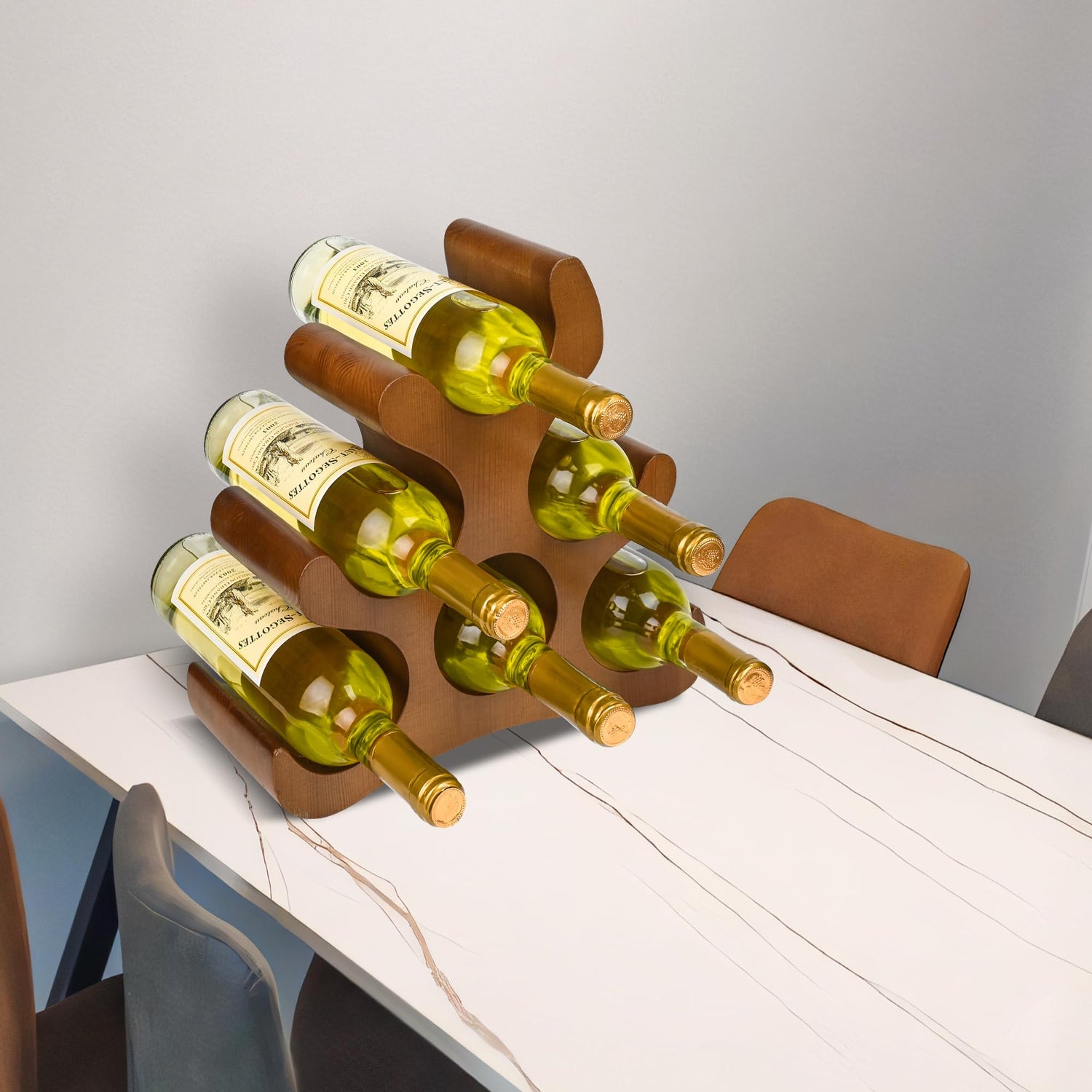 - Versatile Decor: With its neutral color and minimalist style, this wine bottle stand complements various home decor styles and color schemes.