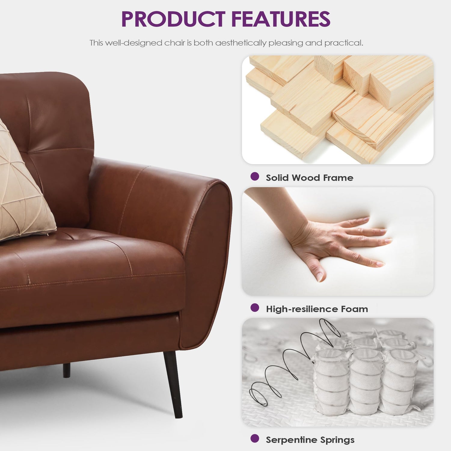 - 【Comfort TYBOATLE Accent Chair】Enhance any room with our Simple Sofa Chair, beautifully crafted from premium PU faux leather. This stylish accent chairs, with its rounded armrests and classic mid-century modern tufted stitching, is perfect for a variety of spaces. Whether you're furnishing a cozy reading nook, styling an elegant living room, upgrading a sophisticated office, optimizing a compact dorm room, decorating a tranquil bedroom, or adding comfort to a boutique hotel lobby, this chair's dimensions of 33.4"(W) x 25.9"(D) x 30.7"(H) ensure it fits perfectly and elevates the decor of any setting