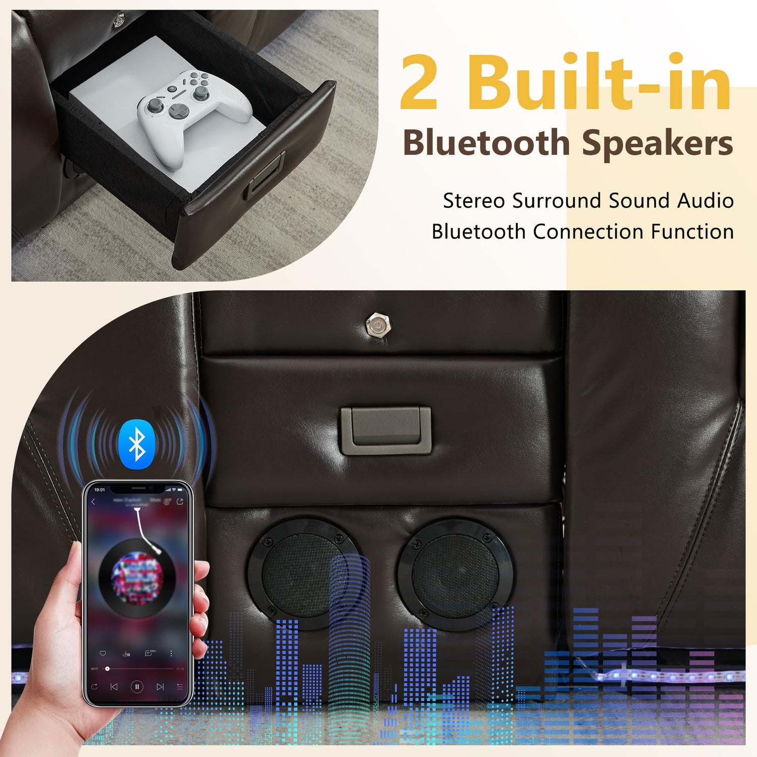 URRED Wall Hugger Loveseat Recliner Sofa with Flip Console, Power Reclining Loveseat RV Couch with LED Lights, Bluetooth, USB Ports, Outlets, Cup Holders, Side Pockets, Faux Leather, Dark Brown
