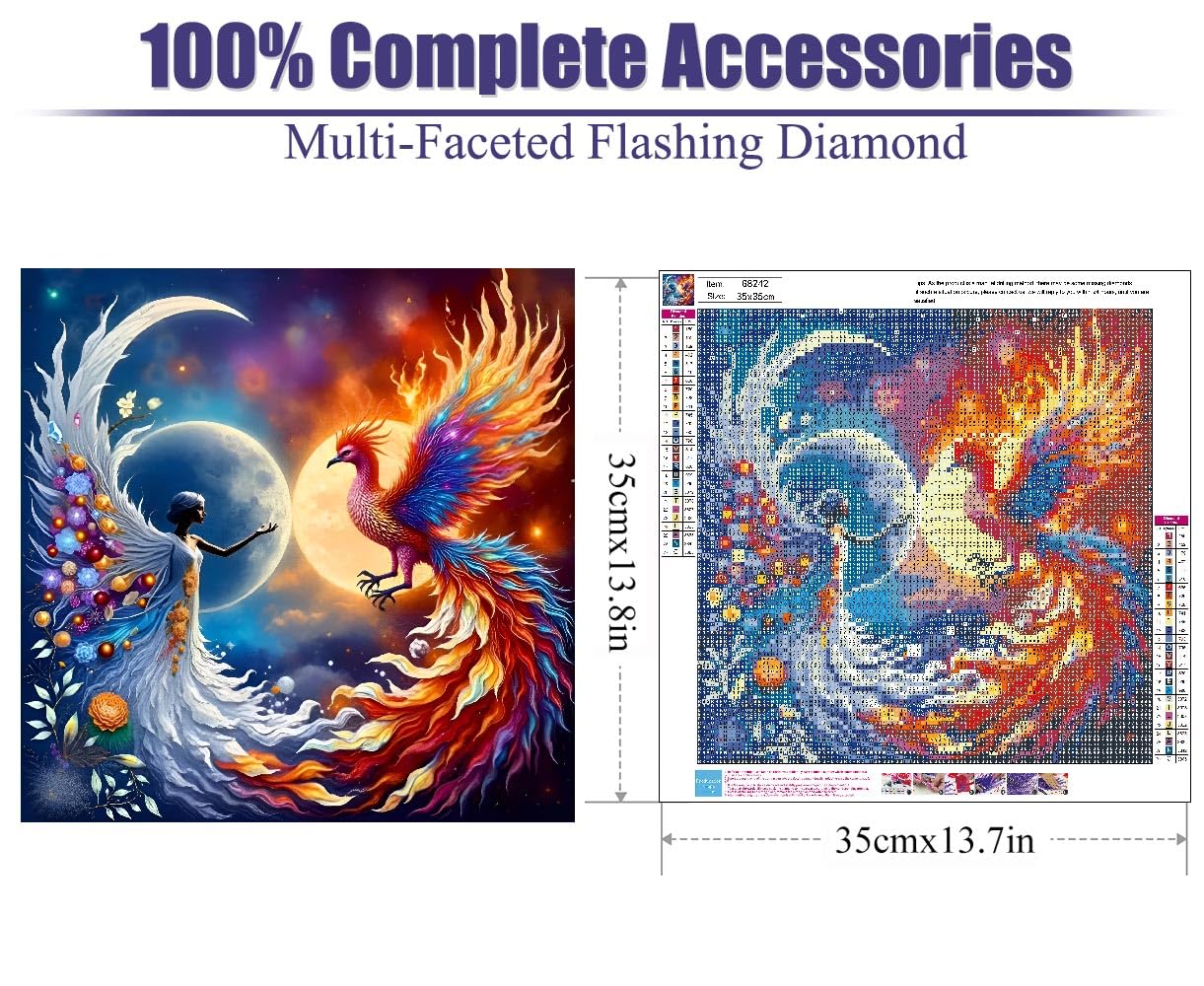 Details: Diamond Art Kits for Adults, 5D Phoenix Diamond Painting by Numbers Kits, DIY Diamond Dots Art Kits, Full Round Drill Diamond Paintings for Adults for Home Wall Decor 13.7x13.7 inch