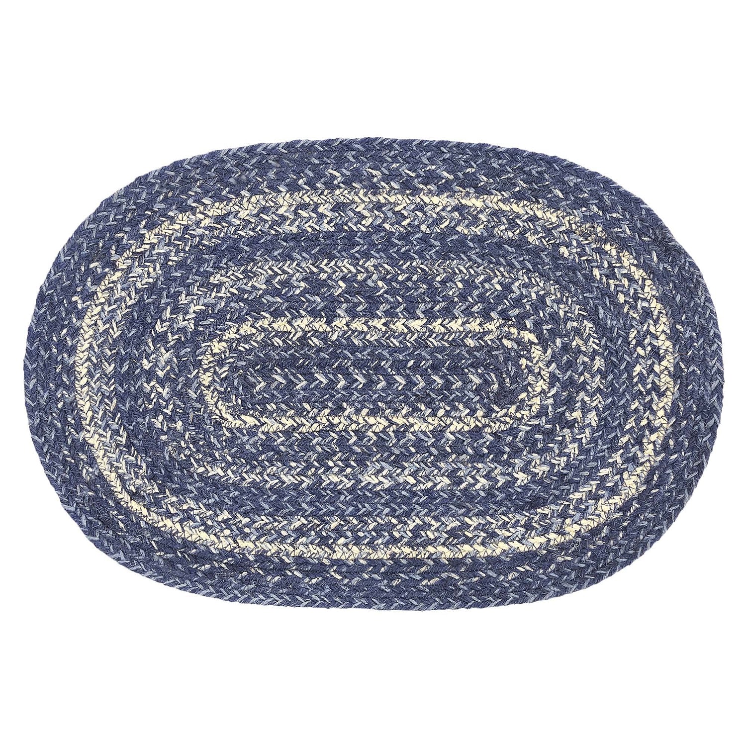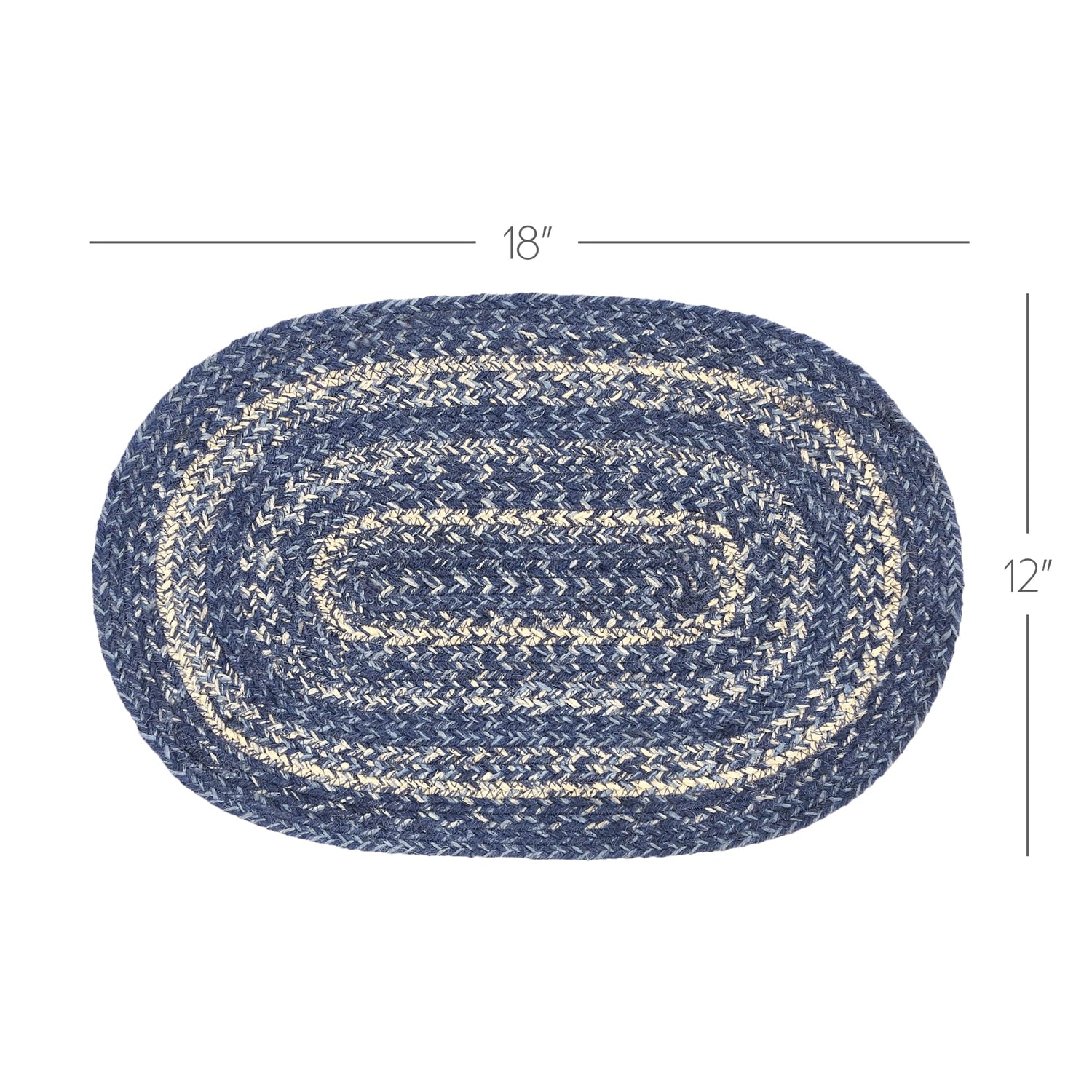 VHC Brands Farmhouse Great Falls Blue Table Placemat, Blue White, Jute Blend, Oval, 12x18 Inches