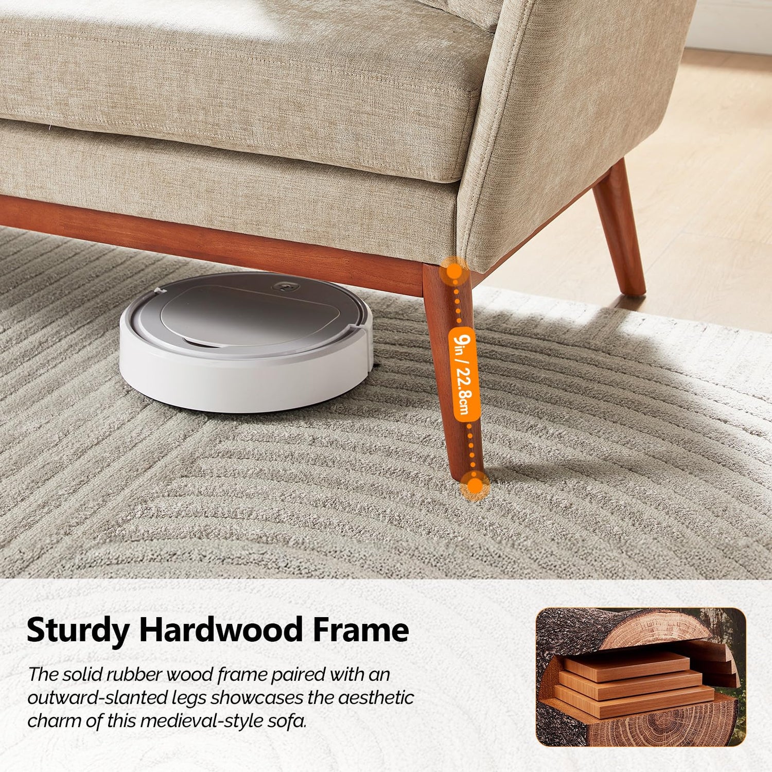 - [A Robust Hardwood Frame Built to Last] The two person couch boasts a remarkably sturdy construction, built upon a solid rubber wood frame that significantly enhances its stability and overall durability. Rubber wood is a dense hardwood, making it remarkably strong and resistant to warping or cracking over time. This robust foundation ensures the sofa will maintain its structural integrity and comfort for years to come.
