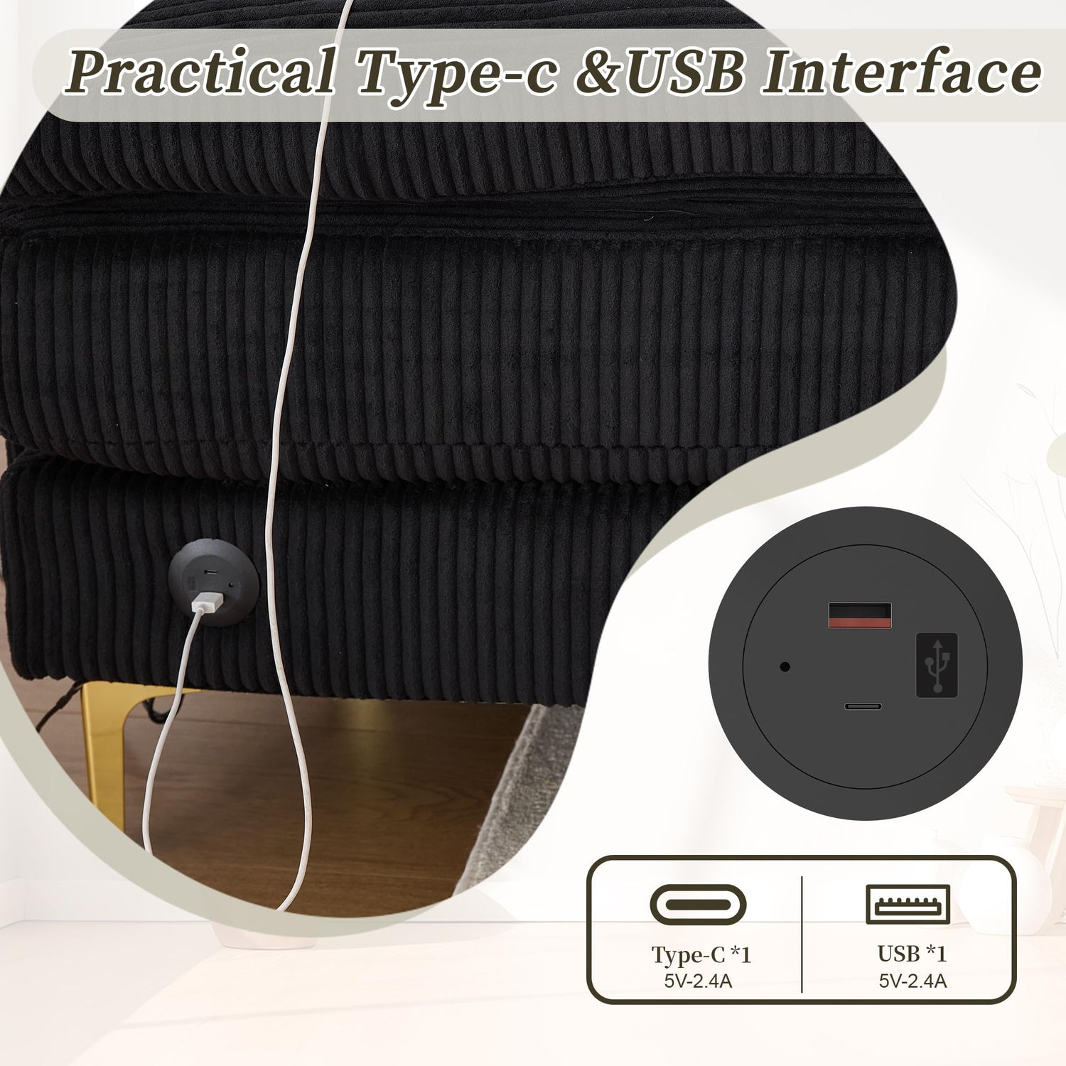 - LED Couch with USB & Type-C Ports: The smart sofa designed with LED light strip that has 7-colorTemperature, which can be changed according to different scenes (The light can be turned off when not in use). To add a touch of ease and accessibility to your daily routine, this U shaped sofa is equipped with 2 built-in charging ports—1 USB-A and 1 Type-C to power up your electronic devices directly from the comfort of your sofa.