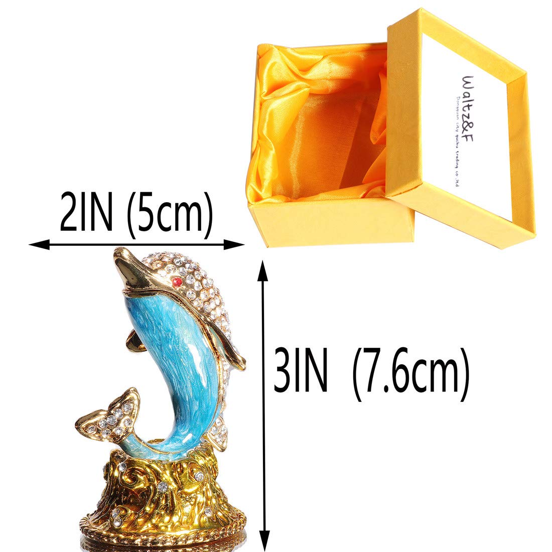 Waltz&F White diamond dolphin Hand Painted Enameled Decorative Hinged Jewelry Animal Trinket Box Unique Gift For Home Decor