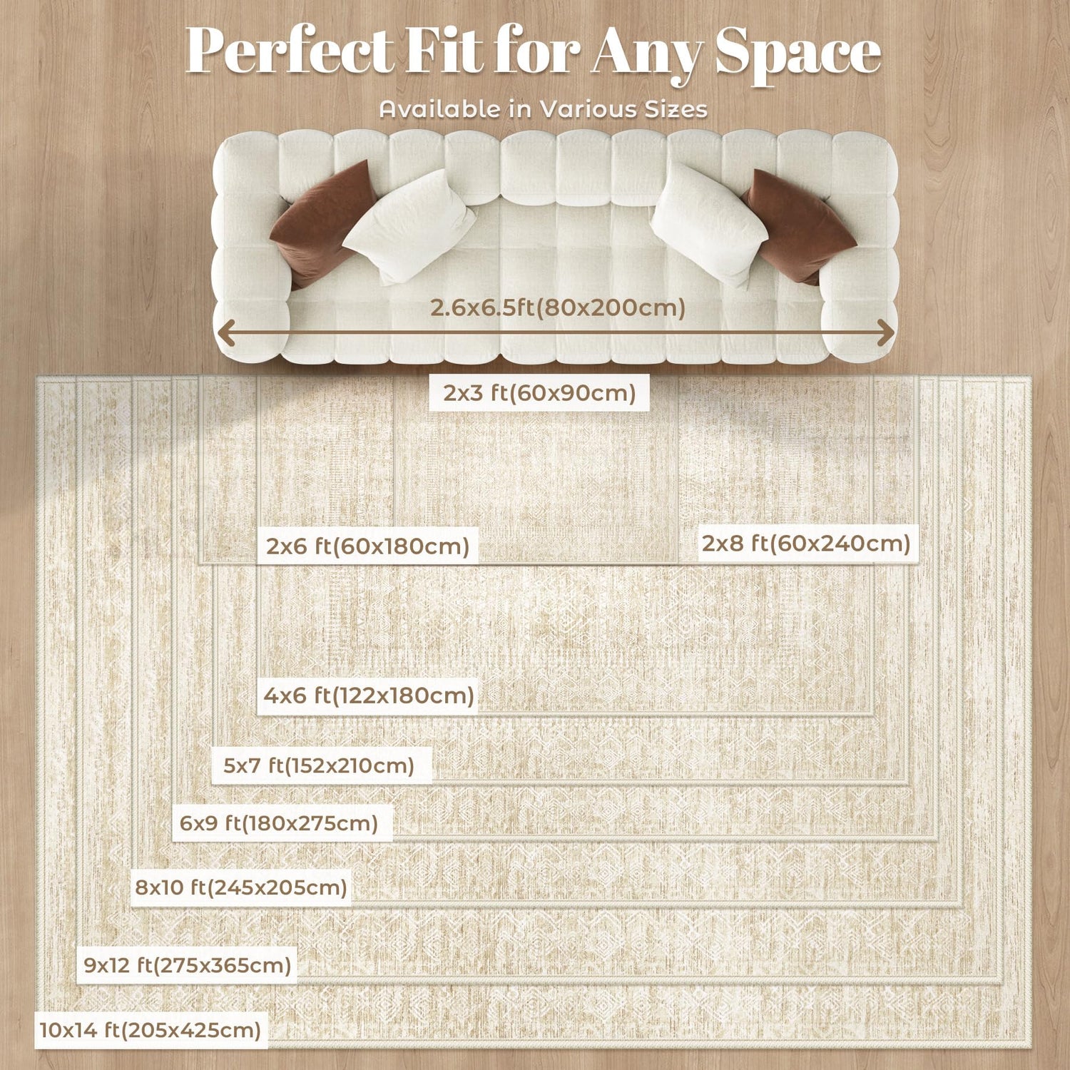 Washable Area Rug 5x7: Moroccan Rug for Living Room Geometric Boho Rug Farmhouse Non Slip Stain Resistant Rugs Low Pile Soft Carpet for Bedroom Dining Room Home Office Children Room (Beige,5'x7')