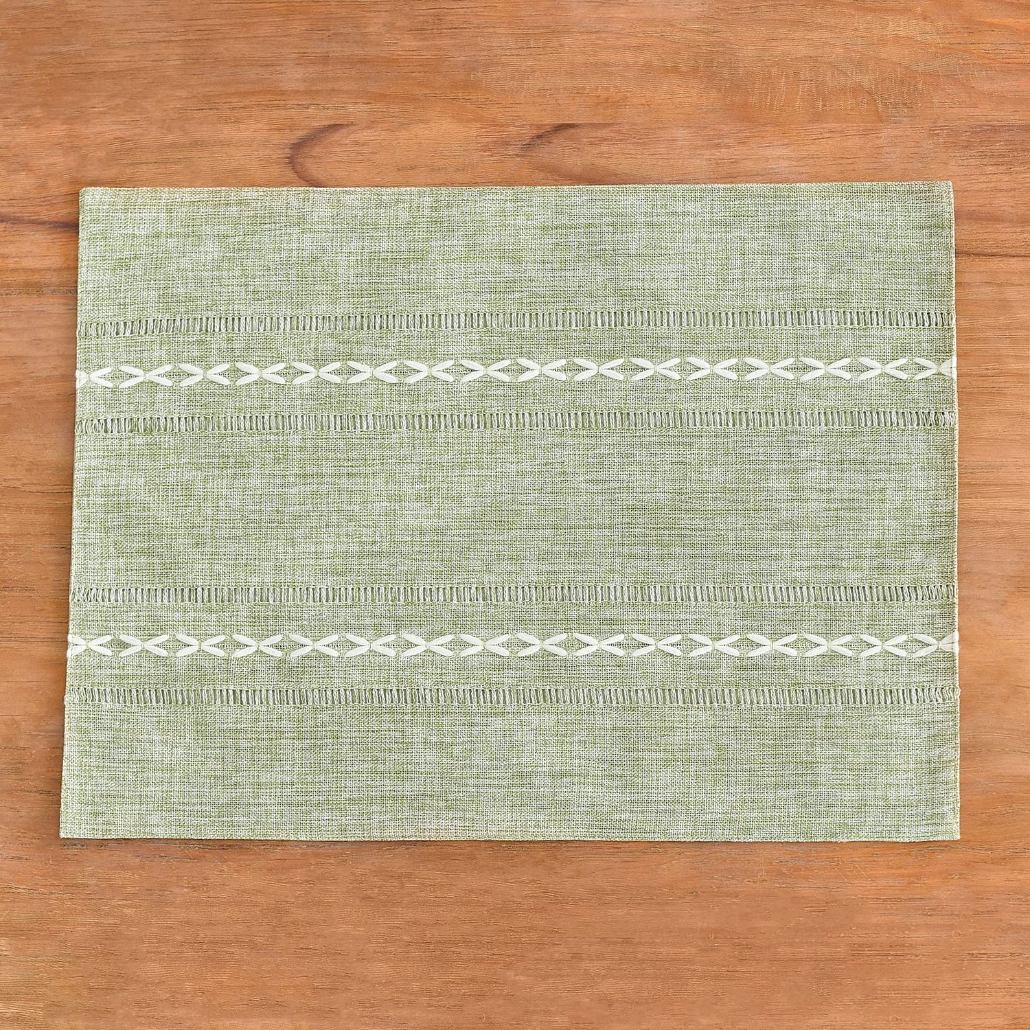 Wracra Cotton Linen Placemats, 12 x 18 Inch Set of 4 Fete Placemats Rustic Hemstitch Place Mats for Kitchen Table and Heat Resistant-Sage Green