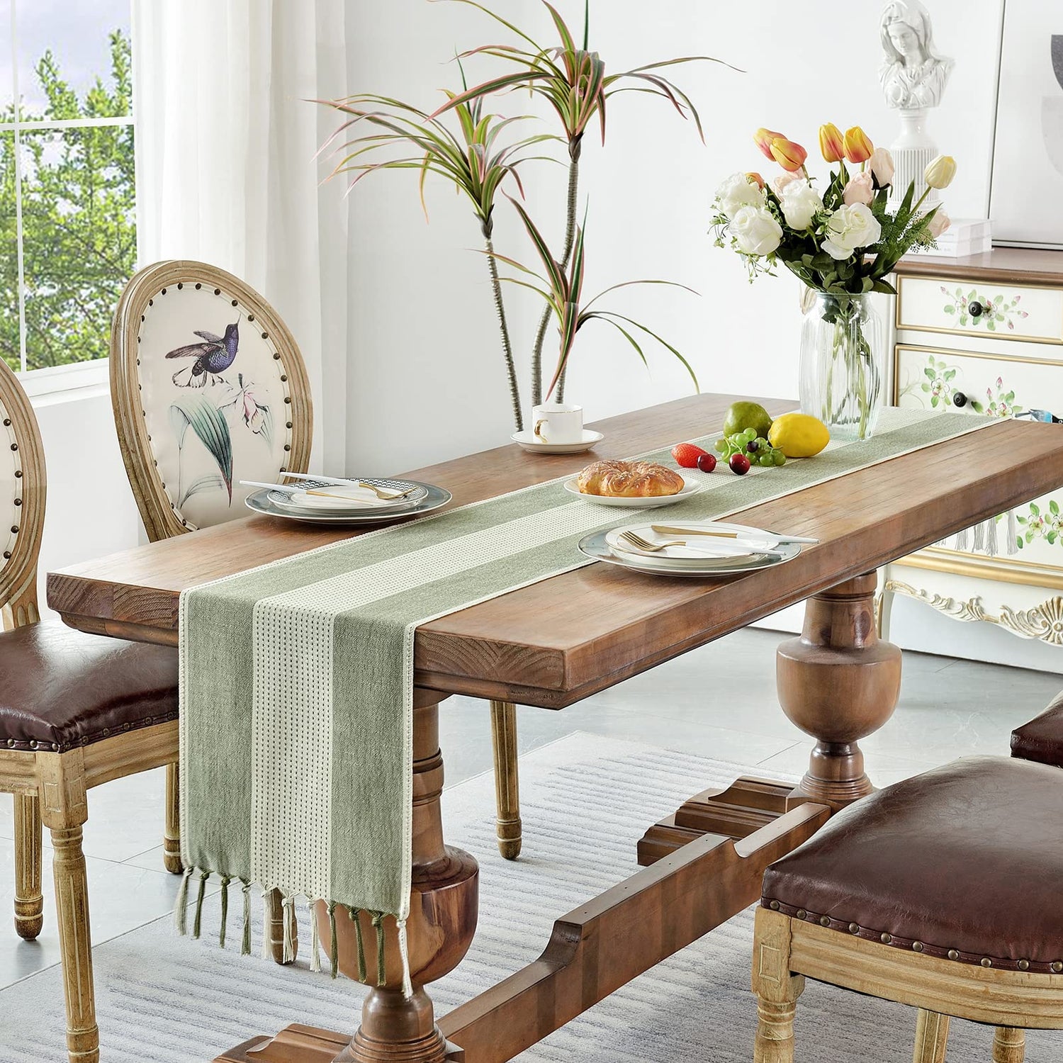 Wracra Linen Table Runner, Farmhouse Macrame Table Runners 72 Inches Long for Dining Table Decor, Wedding, Party and Dresser Decor (Sage Green,72")