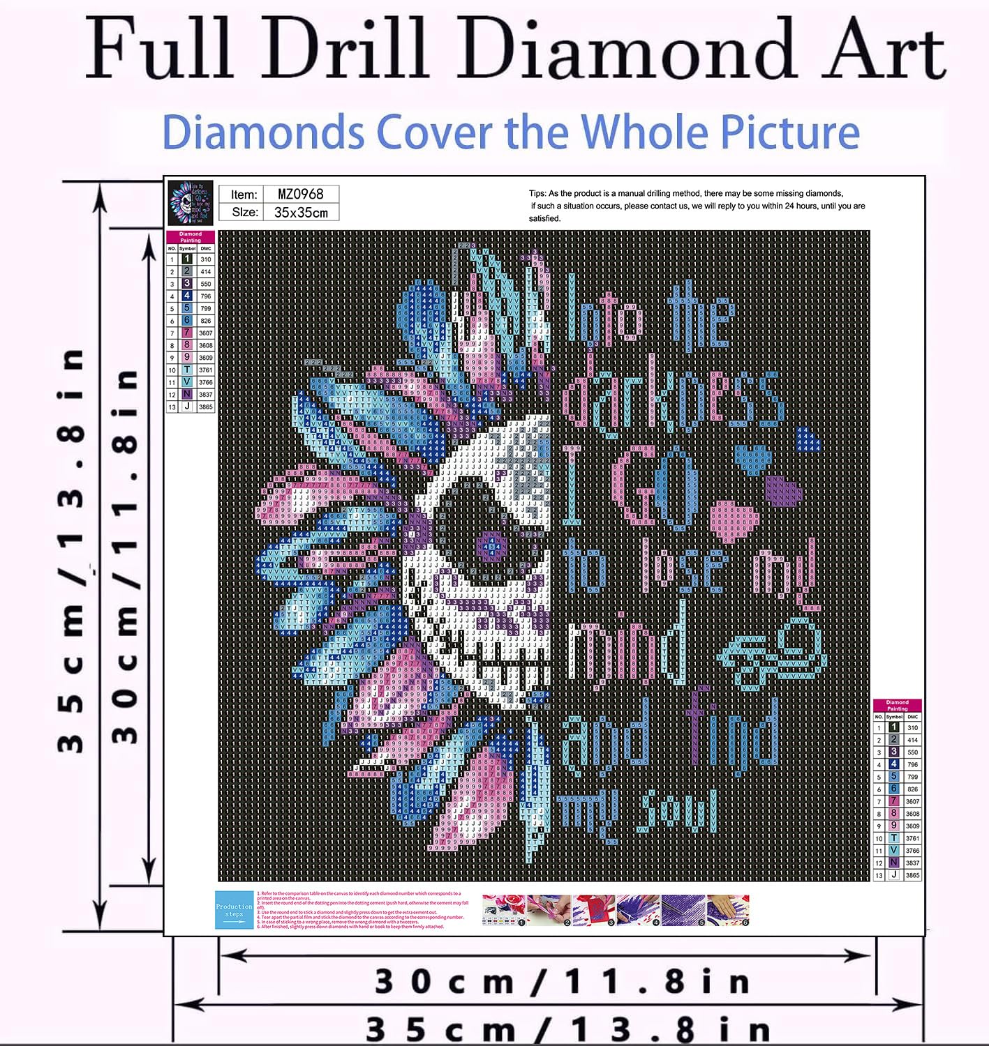 Xylogist Cute Sugar Skull Diamond Art Kits for Adults-“Into The Darkness I Go”Diamond Painting Kits for Beginners,5D Full Round Drill Gem Art Kit, Home Wall Decor 14x14 Inch