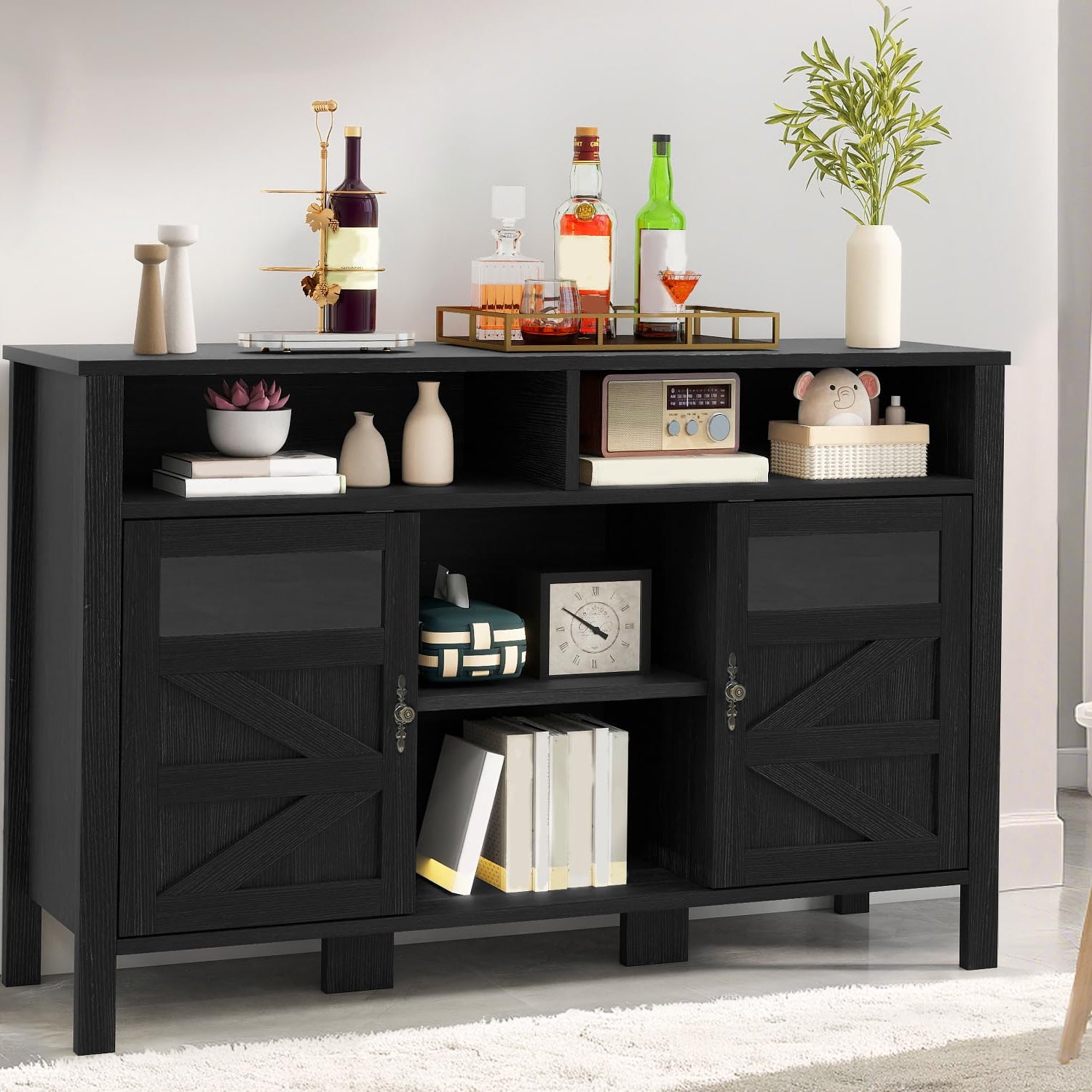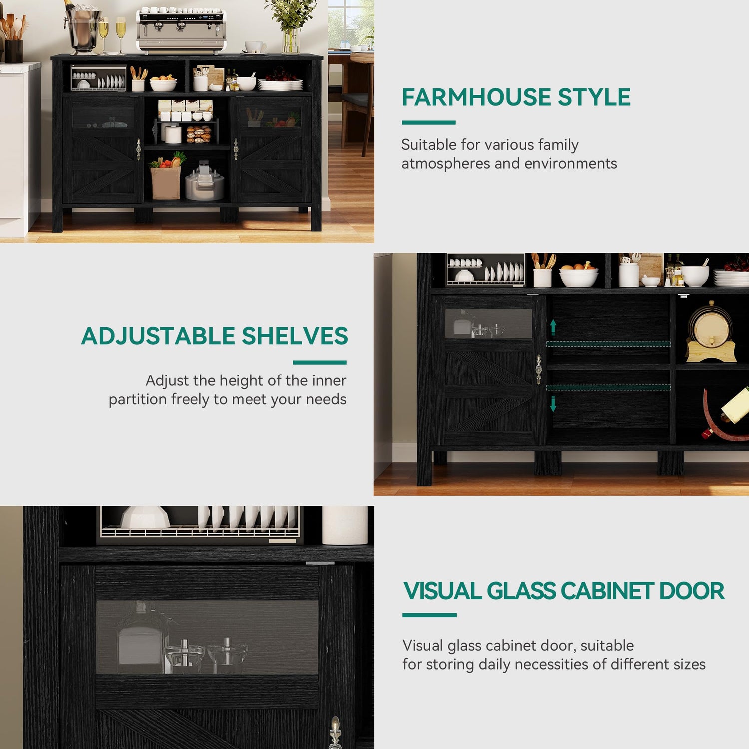 YITAHOME 55'' Farmhouse Buffet Cabinet with Storage, Large Sideboard Cabinet with 2 Doors & Open Storage, Versatile Coffee Bar Table for Kitchen & Living Room (Black)