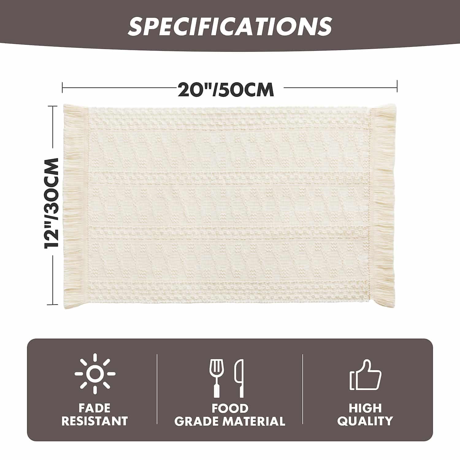 - Package includes table placemats set of 4, measures 12x20 inches including tassels.