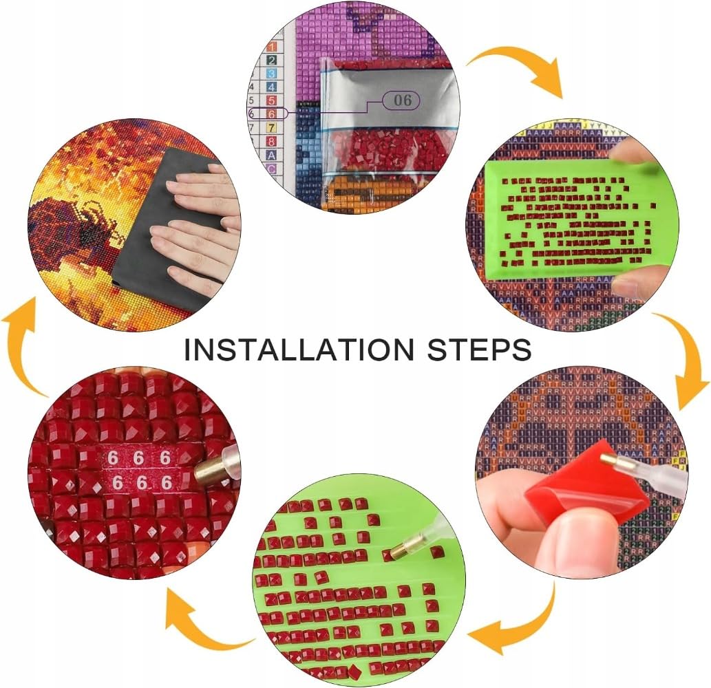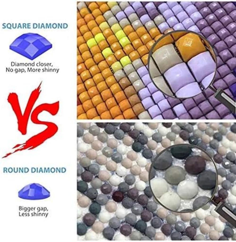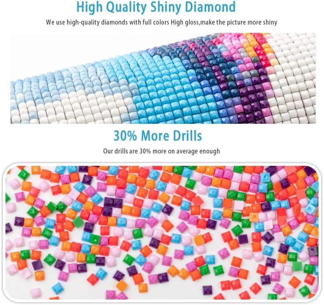Details: Canvas size: We have 4 sizes for you to choose from: 12x16 inches, 16x20 inches, 16x24 inches, and 20x28 inches. The larger the size, the clearer the diamond painting produced. Features of square rhinestones: 1. Square diamonds fit more perfectly, leaving no gaps. 2.360 degree refraction rhinestone solid color. 3. High-quality manufacturing process. 4. Antioxidant, radiation resistant and durable. Package Contains: 1x Point Drill Pen,1x Environmental Protection Mud, 1x Diamond Tray,1x Coloured Resin Rhinestone Diamond Accessories,1x HD painting Canvas 📔Notice: It is 5D diamond embroidery, This is DIY diamond painting,not finished picture,need you finish it by yourself. Our all diamond painting are the package, guests need their own handmade, not finished,we provide necessary material and tool,you can do it with your family or your children,enjoy the leisure time. You may try to make a diamond painting and express your feelings at this moment, giving it to the one who loves you the most.So it is like painting an artwork using diamonds but you're the artist! It's really life changing. 📋DIY Diamond painting production steps: . Open the box and check the diamond draw special tools. ②. Refer to the table below the canvas to find the corresponding magic cube diamond. ③. Apply a proper amount of diamond adhesive to the pen.Stick the corresponding diamond. ④. Stick the diamond onto the corresponding canvas.The rest of the diamonds can be put inside the zip lock bags. ⑤.Use book or your hand to press the diamonds to ensure it's more stout.