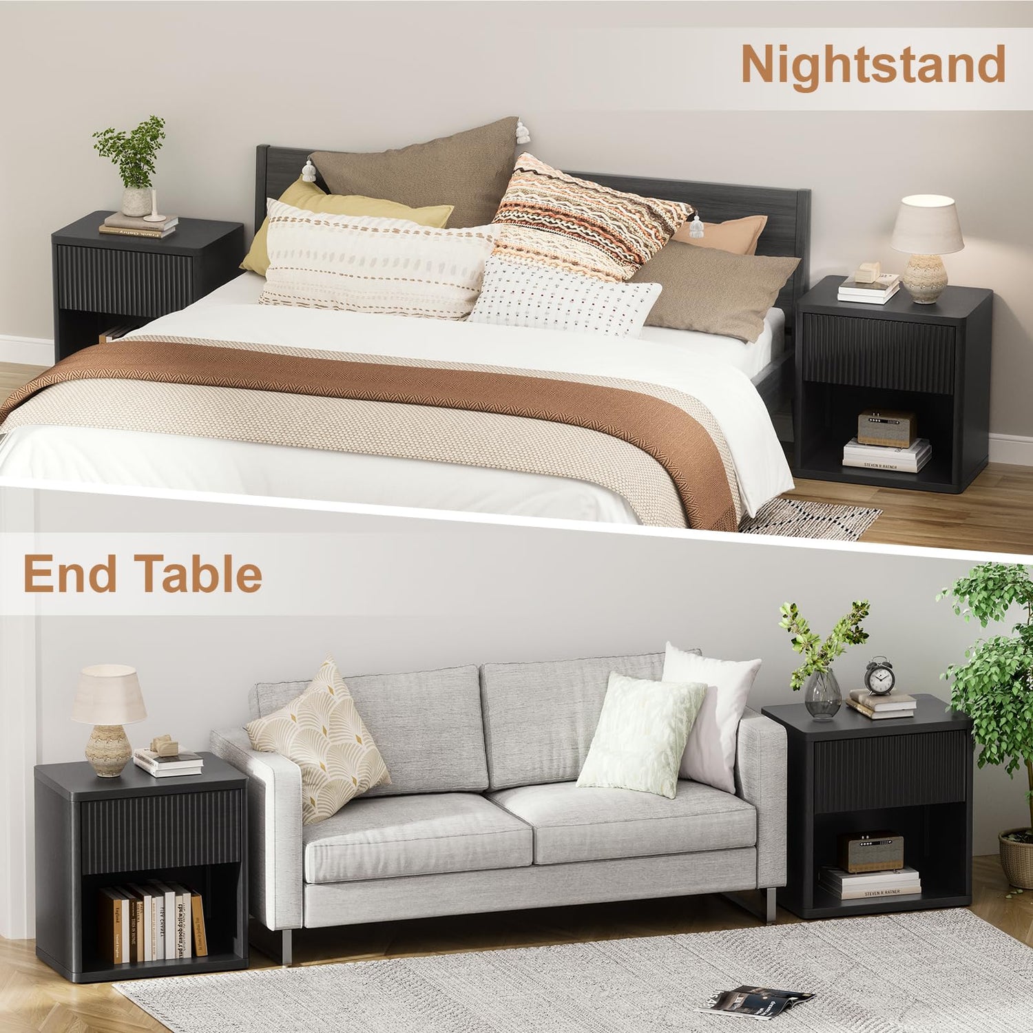 - 【EASY TO ASSEMBLE】: This fluted night stand black living room is designed for simple assembly. Clear, easy-to-follow instructions and pre-marked parts make the setup process quick and hassle-free.