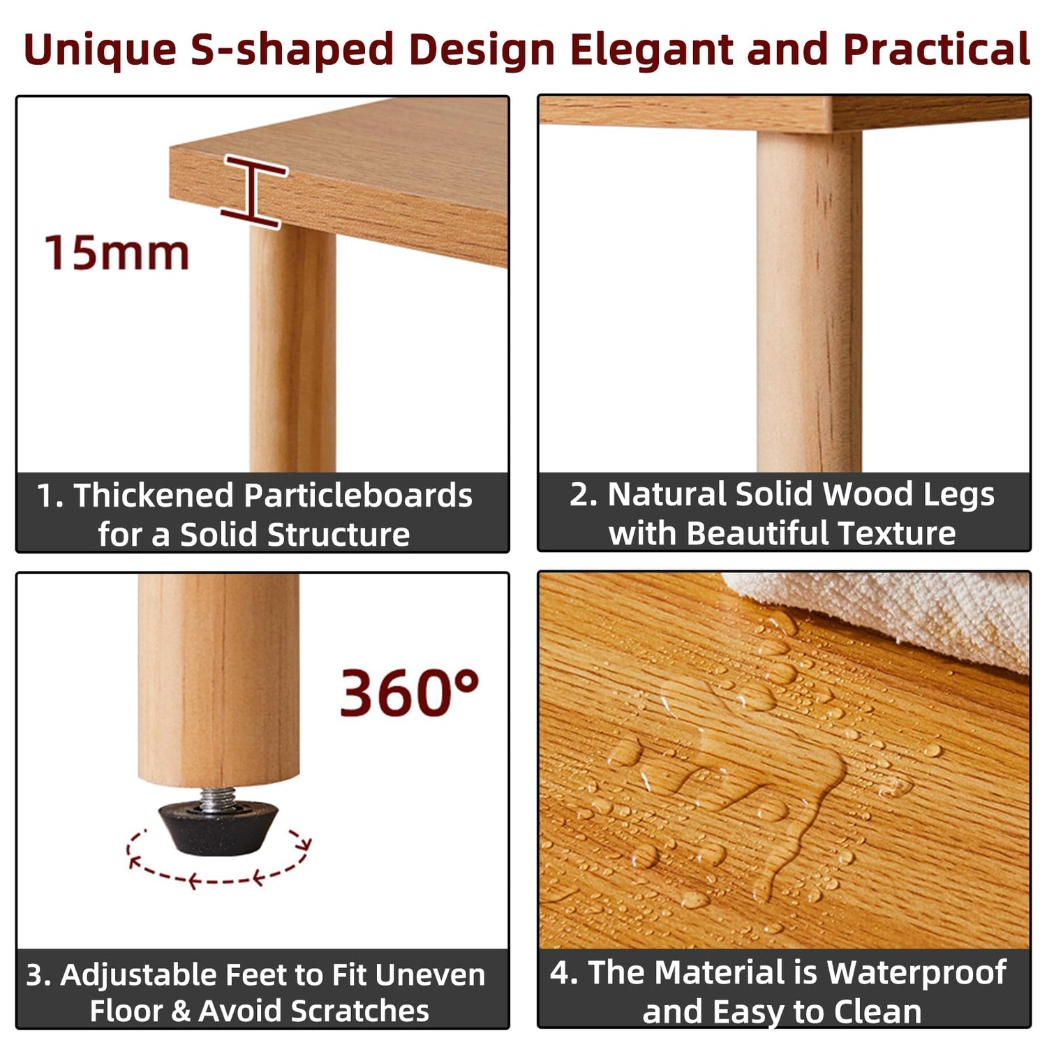 Aibiju Wooden Night Stand with Open Shelf, Nightstand with Solid Wood Legs, S-Shaped Bed Side Table 3 Tier,20 inch High End Table Natural Wood YD-TM152N