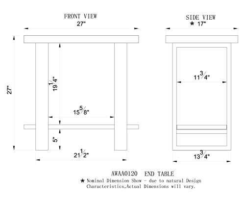 - USER COMFORT: To provide the best user experience, the Alpine end table includes nylon floor protectors that prevent any scratching or slipping of the table. The bottom shelf measures 27" wide and 11.75" deep and is 19.25" away from the top shelf for easy reach for items.