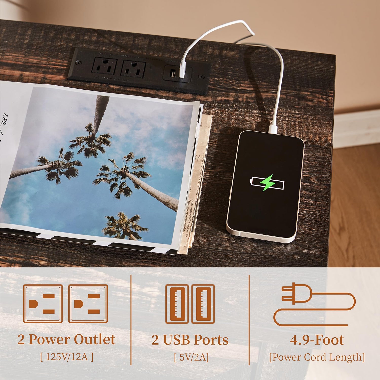- Charging Function with USB Ports: This nightstand with charging station is arranged with 2 Standard AC Outlets and 3 USB ports. Side table with a hole at the back for organizing cords, making the desk neater while providing convenience for charging your devices such as cell phones, tablets, earphones.