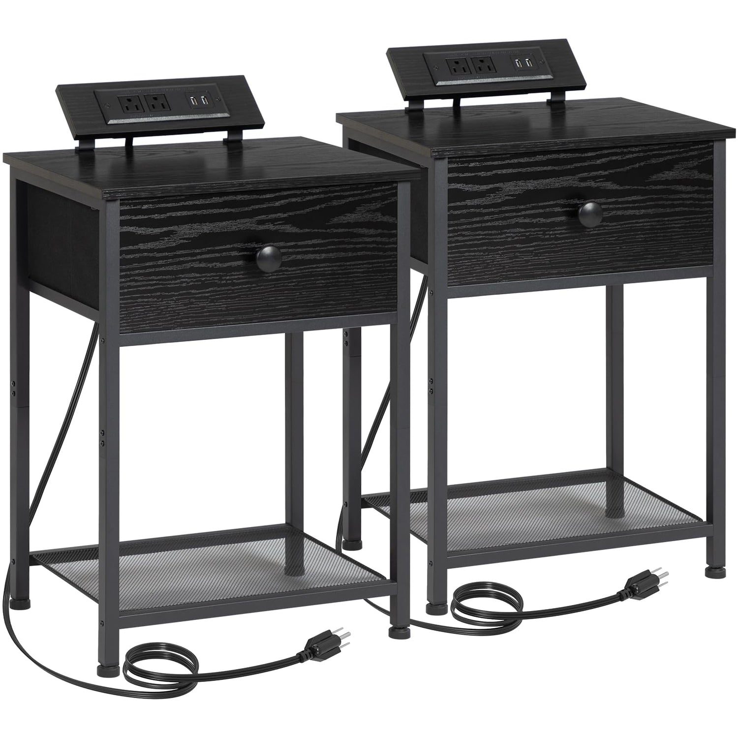 - Night Stand with Charger Station: The set of 2 nightstands featured with 2 outlets and 2 USB ports, easily charge your phone, Mac, etc. The black nightstand can charge 4 electronic devices at the same time, which makes everything within your arm's reach