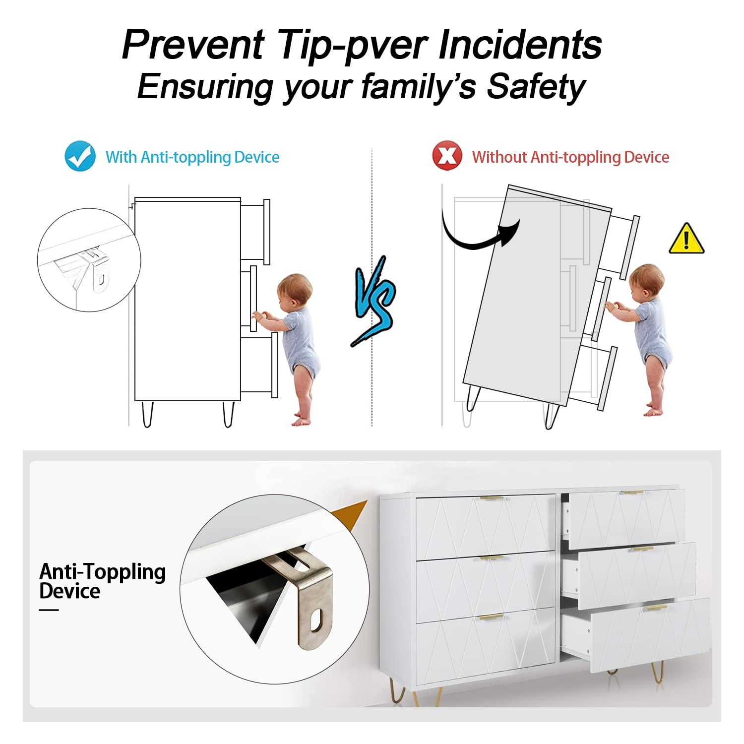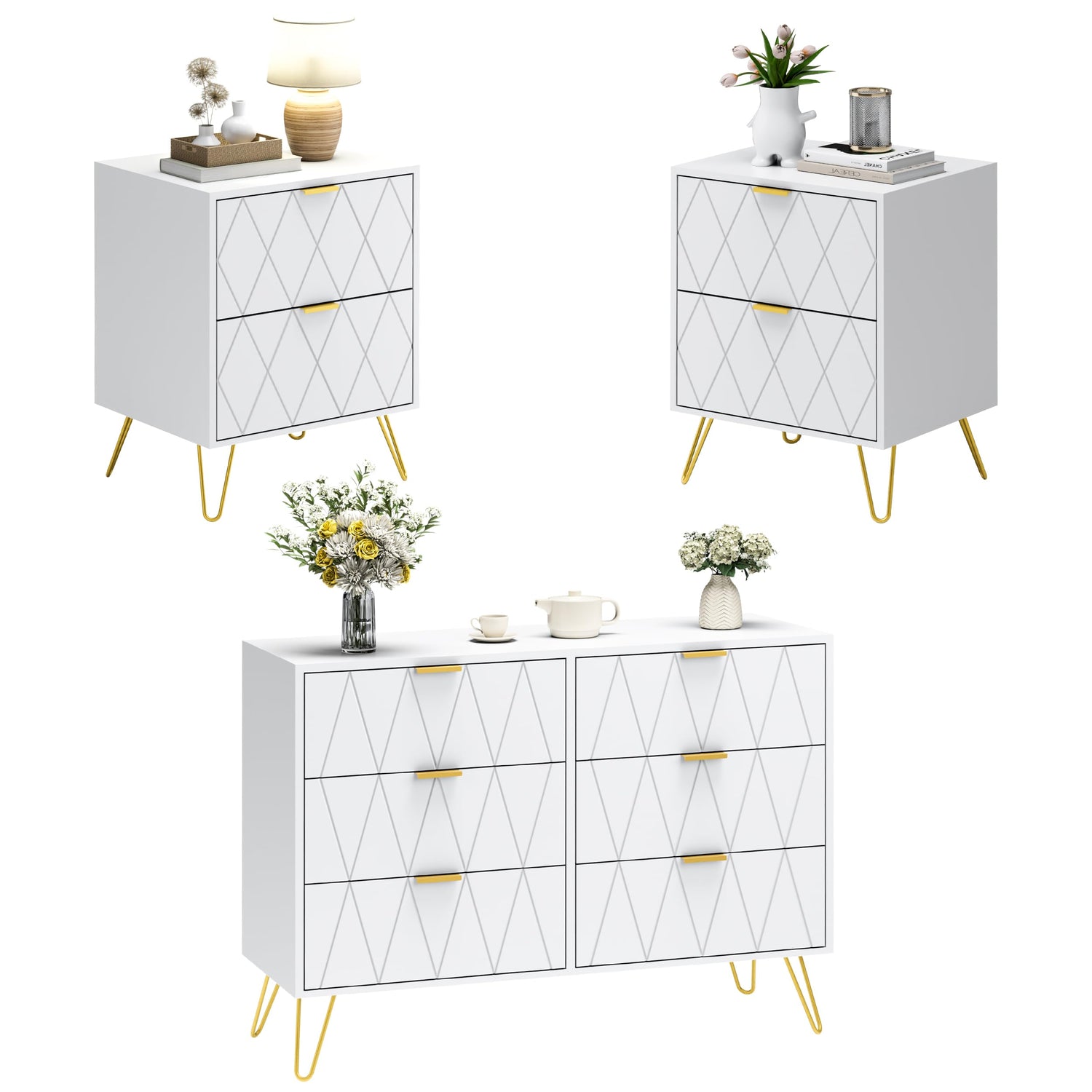 Anbuy 6 Drawer Dresser and Night stand Sets for Bedroom, Two Drawers Nightstand Set of 2 & 6 Drawer Dresser Combo 3 Pieces (White)