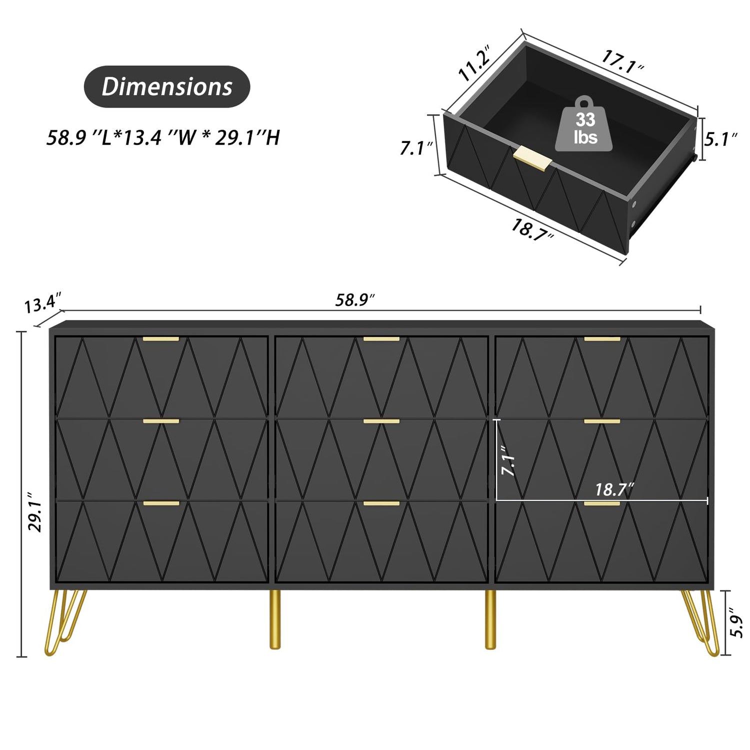 • What you will get: 1 x Modern 9 drawer dresserfor bedroom, 1 x Modern Nightstand set of 2
