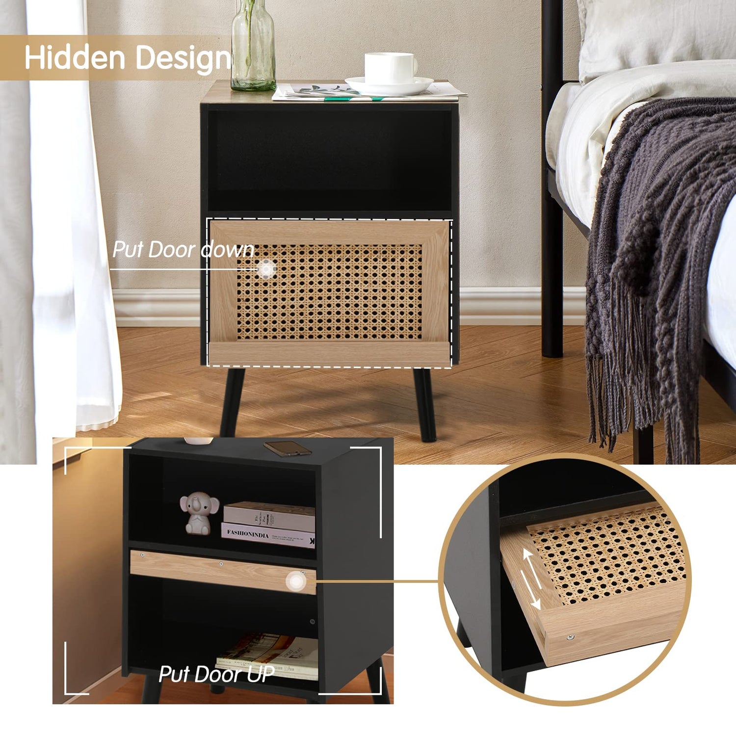 - ✅【Classic & Stylish Nightstand】The door of night stand is made of natural rattan with the boho-style; black, brown and oak cabinets available, a sense of seniority comes out, it can match any style of your home. Anbuy's simple yet elegant design will complement any decor as a sofa side table or nightstand.