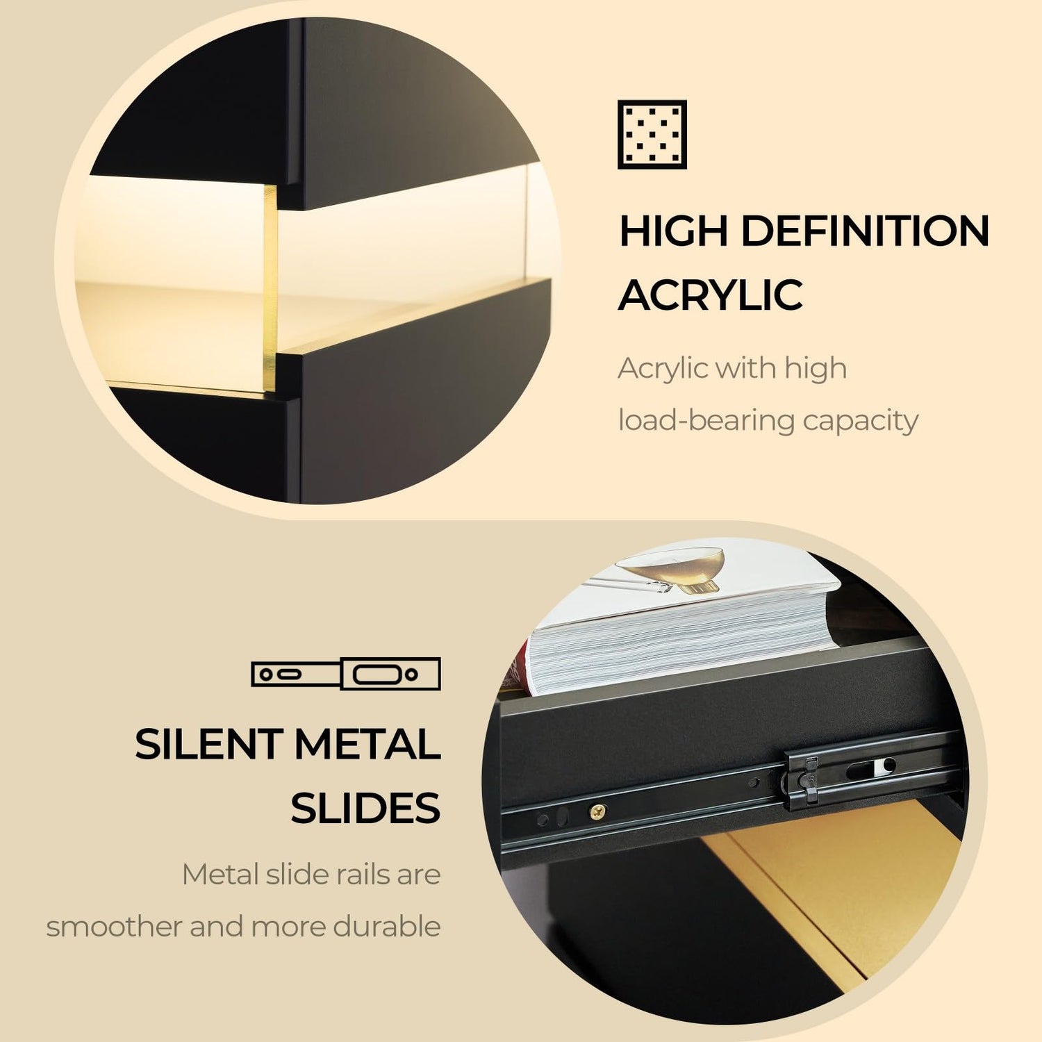 Bingoday LED Nightstands Set of 2 Night Stands for Bedrooms Set of 2 Modern Black Nightstands with 4 Drawers Wide LED Nightstand Bedside Table