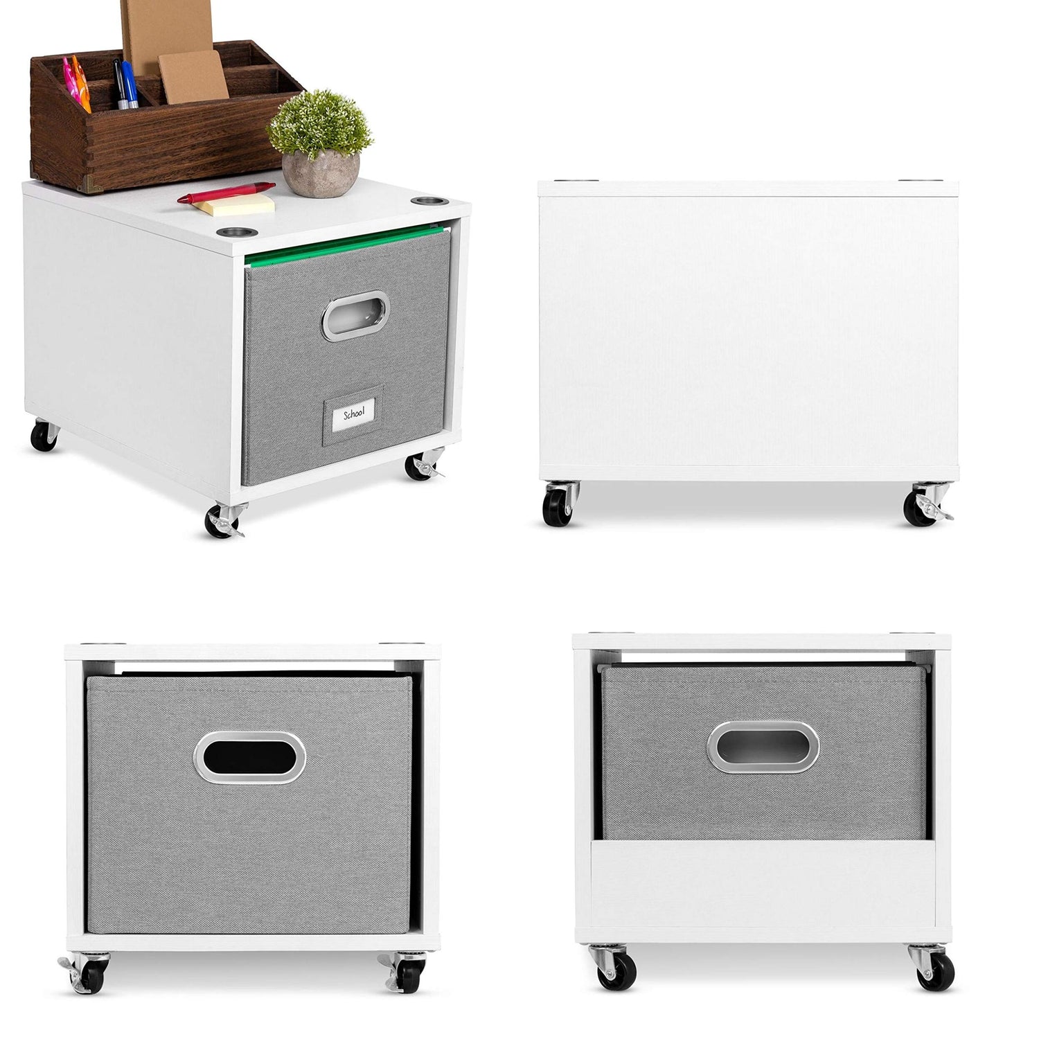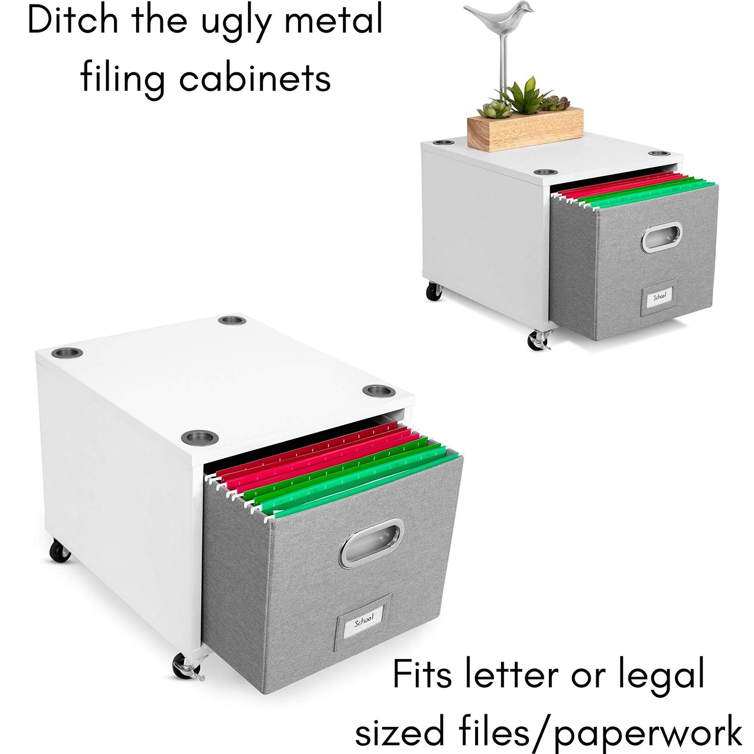 BIRDROCK HOME Decorative Rolling File Cabinet with Removable Storage Bin and Lateral Drawer